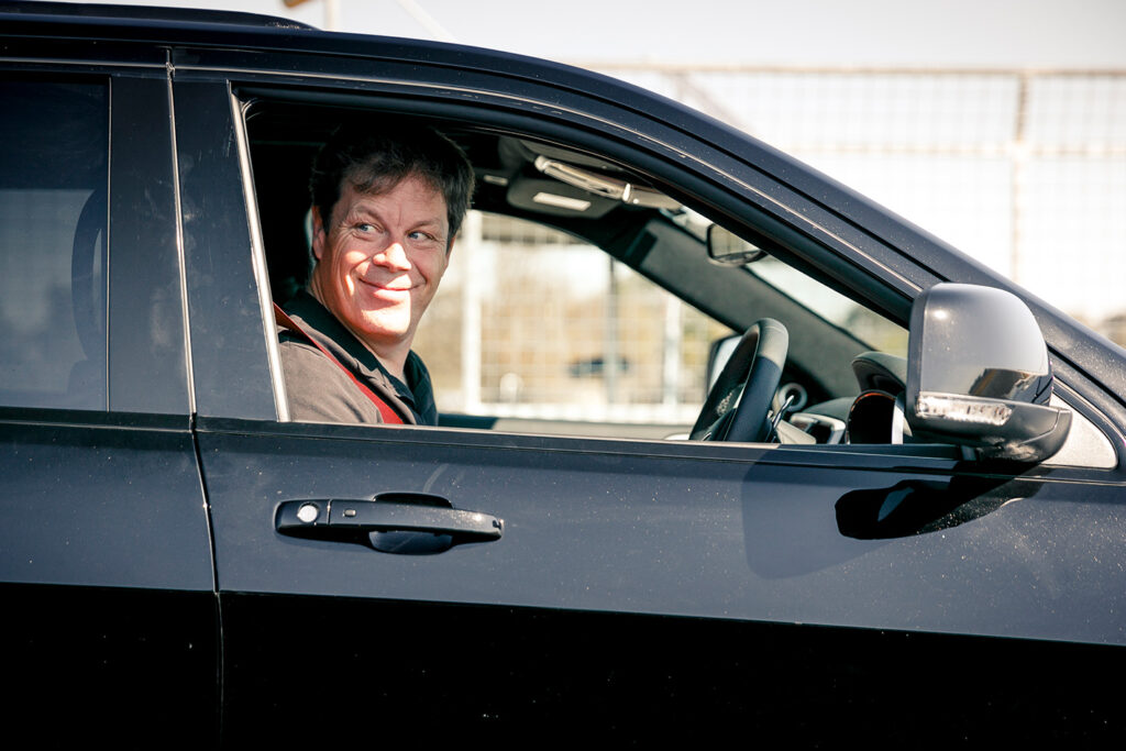 man driving at training course