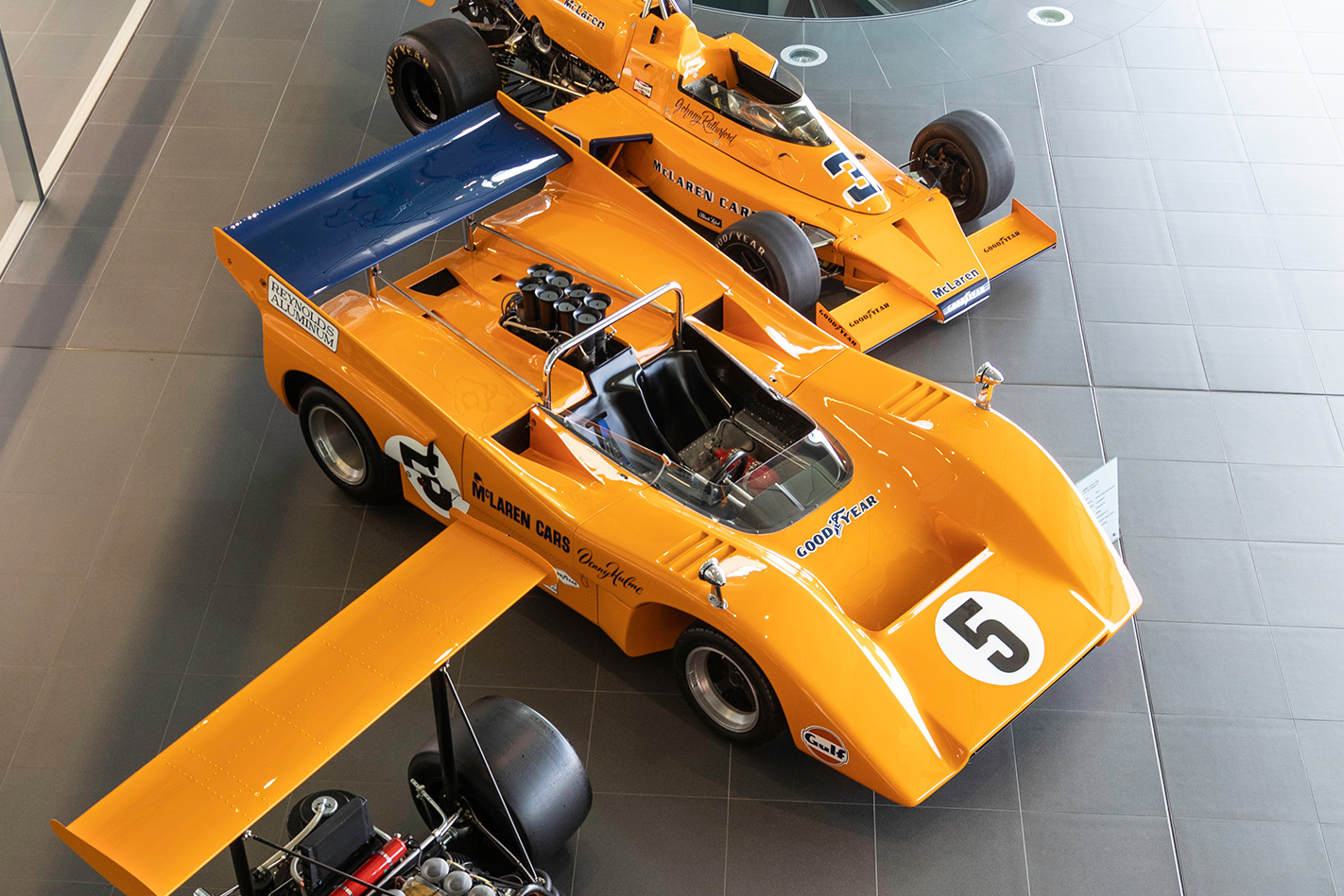 Winter sunlight floods the boulevard, which can only be described as a magnificent museum of motoring. Along this corridor are parked some of the most historically impressive vehicles in the company’s fleet, from Bruce McLaren’s Formula 1 racing car, the M7C, to Mika Häkkinen’s title-winning, historic MP4-13. It’s enough to send any revhead’s pulse racing.