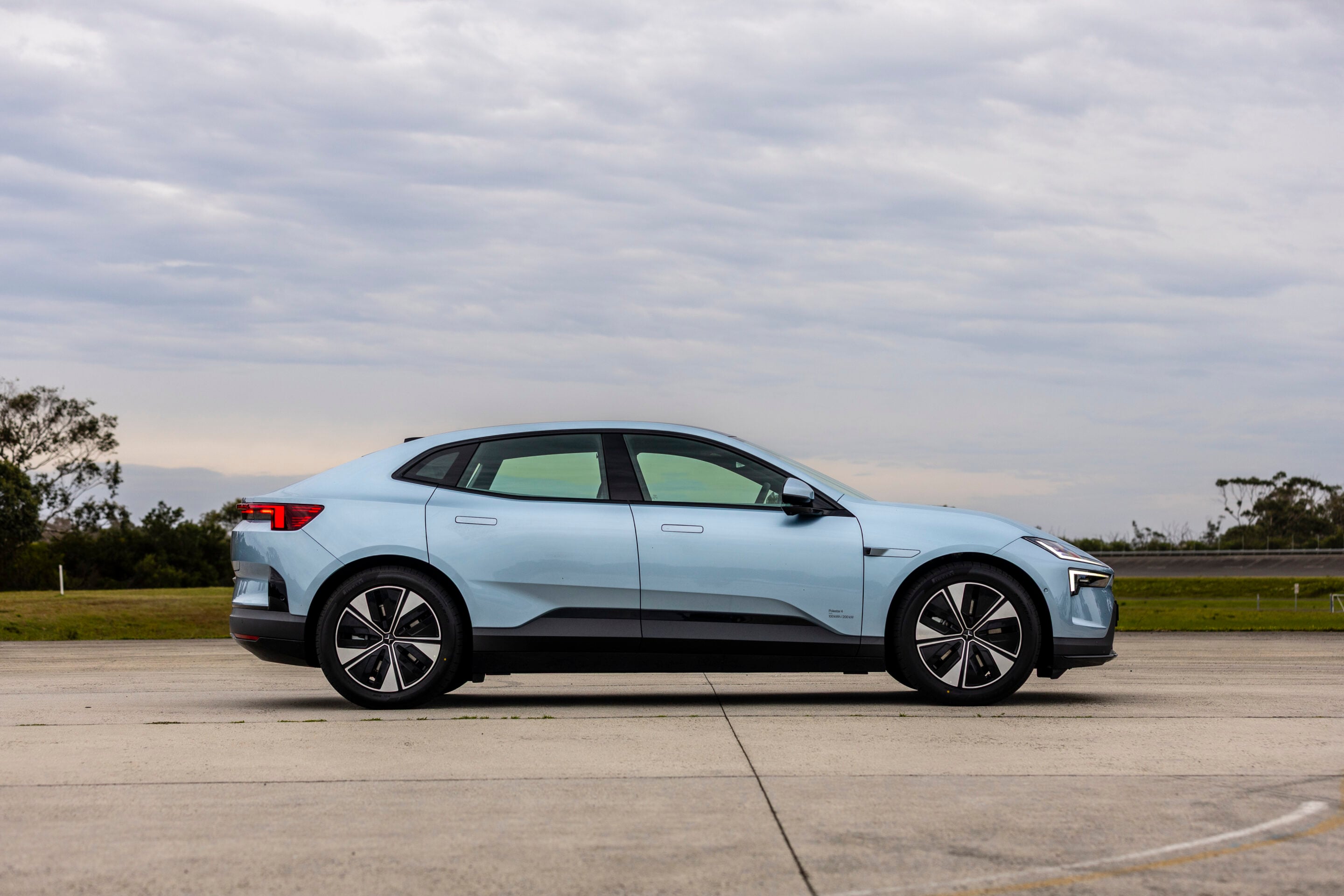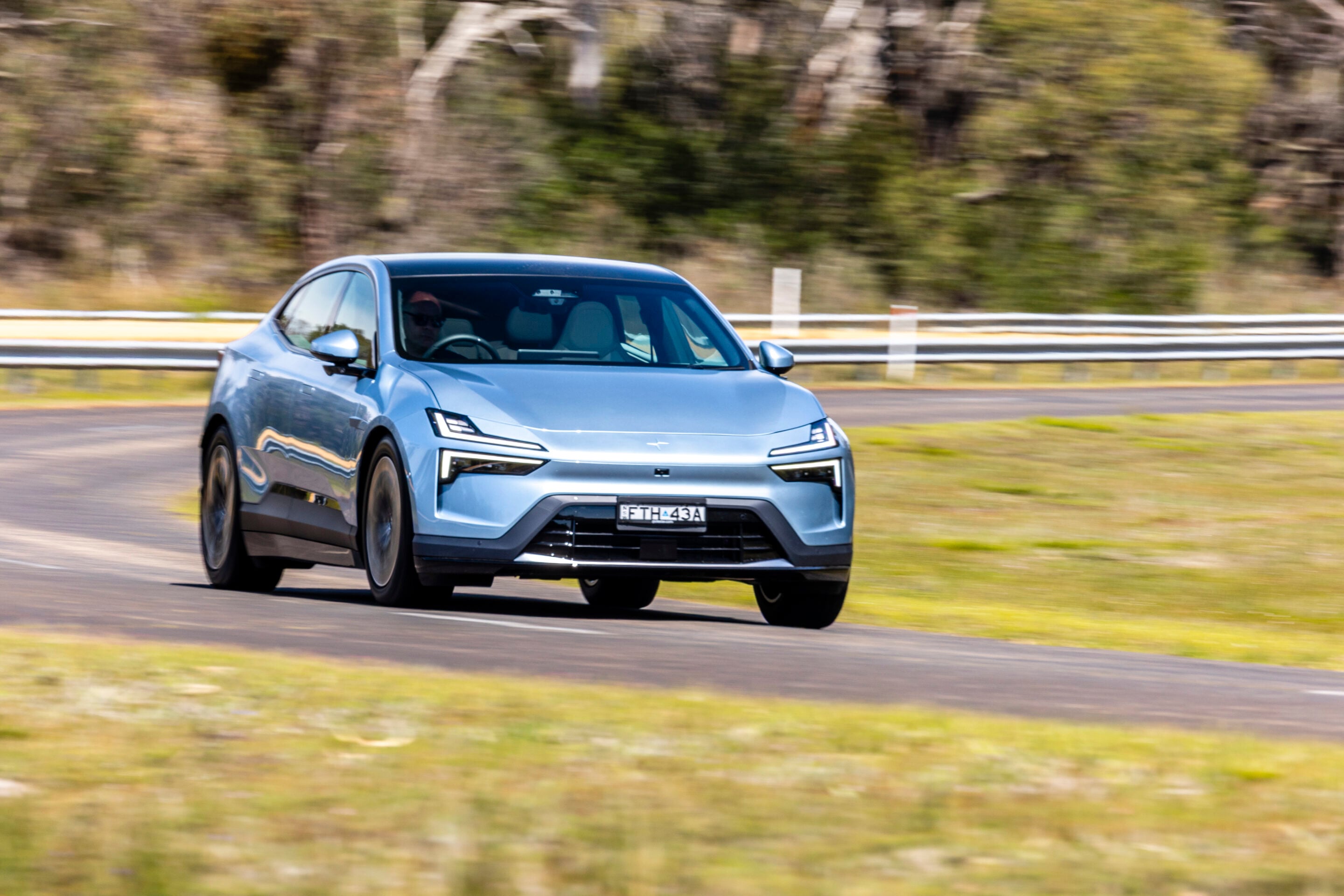 Like all electric cars, the Polestar 4 feels fast, the 7.1-second run to 100km/h backing that up, even if this single motor model is the slower of the two. Interestingly, Polestar has accounted for the pace with quality Pirelli P Zero rubber, a performance-oriented choice, without question. The 100kWh battery is hefty, and the single motor makes an easy 200kW and 343Nm. The kerb weight of 2230kg means it’s a portly vehicle to fire through a ride and handling course, and the weight is never far from the mind of the person holding the steering wheel.