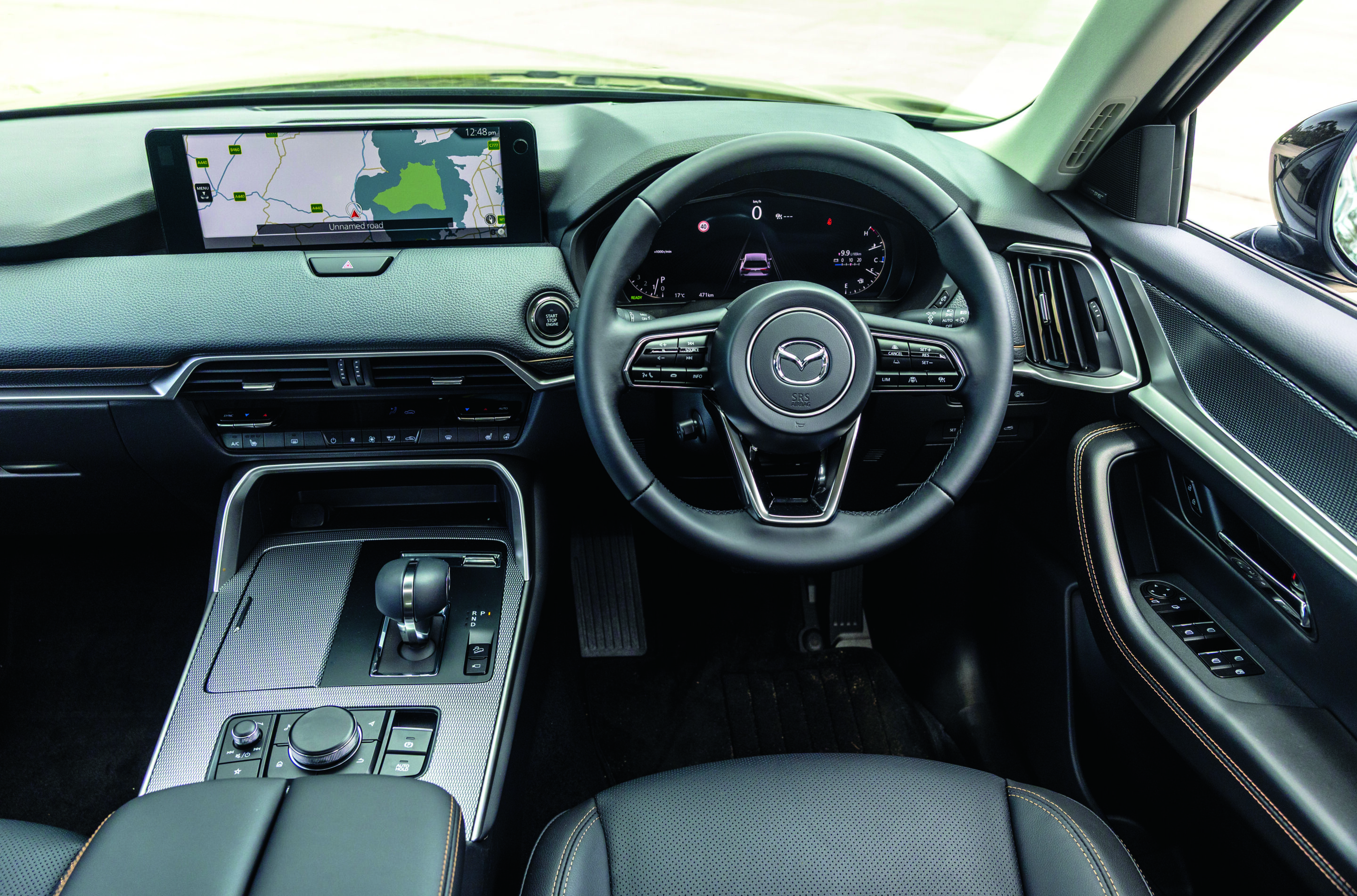 Beyond the impressive stomp, the other selling point here is the standard equipment. The interior is tech-laden, with details like a ventilated wireless phone-charging pad and, in this specification, a huge panoramic sunroof, head-up display, heated and ventilated front seats with memory function and even a heated steering wheel.
