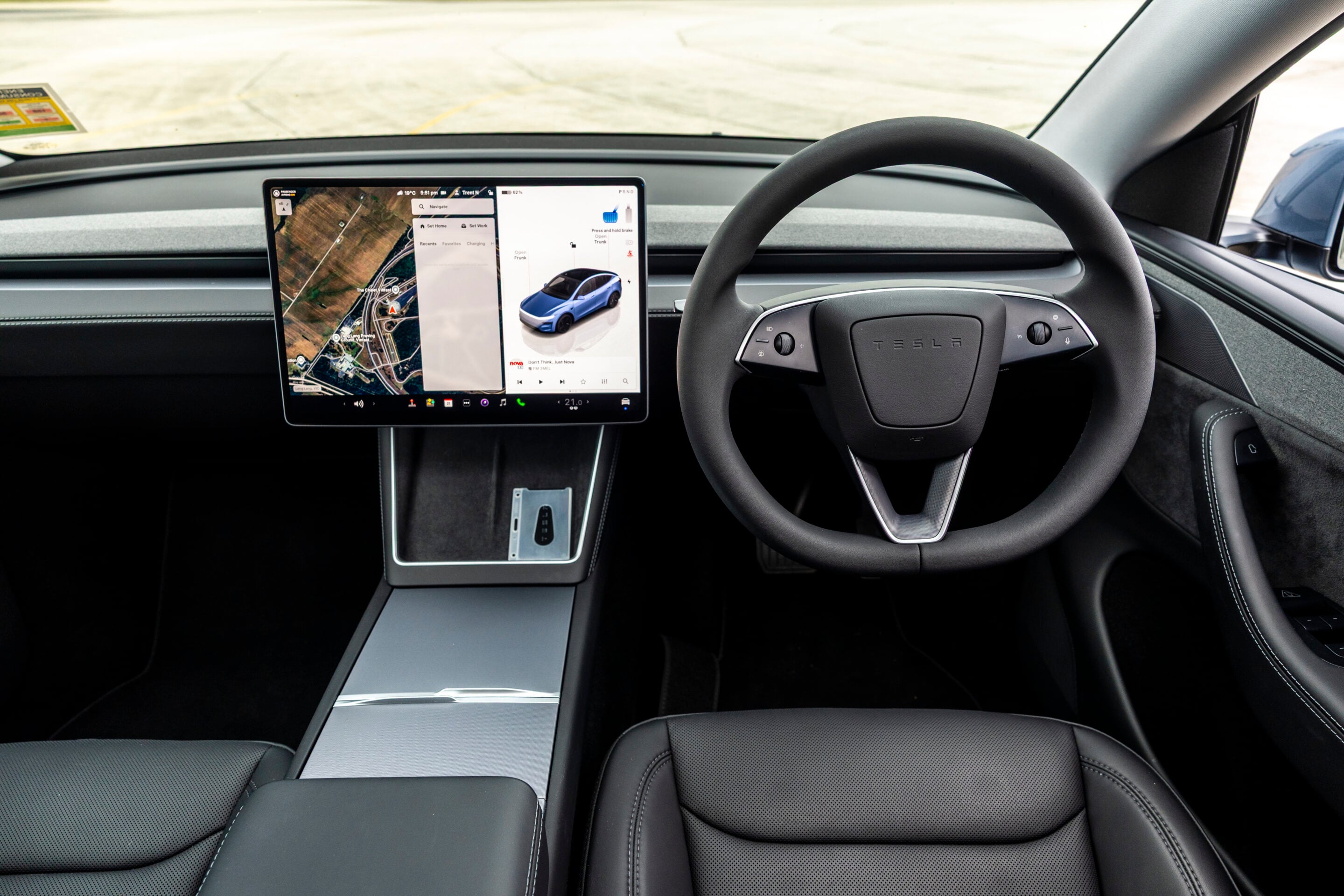 As tested though, the Long Range Single motor crests $90,000, with options getting very pricey, very quickly. The judges agreed that too many crucial functions require navigation through the central infotainment touchscreen, and that the rear window delete is a case of the design team running roughshod over engineering. If you spend a lot of time on rutted rural roads, the firm ride will also grate, but around town it will behave well.