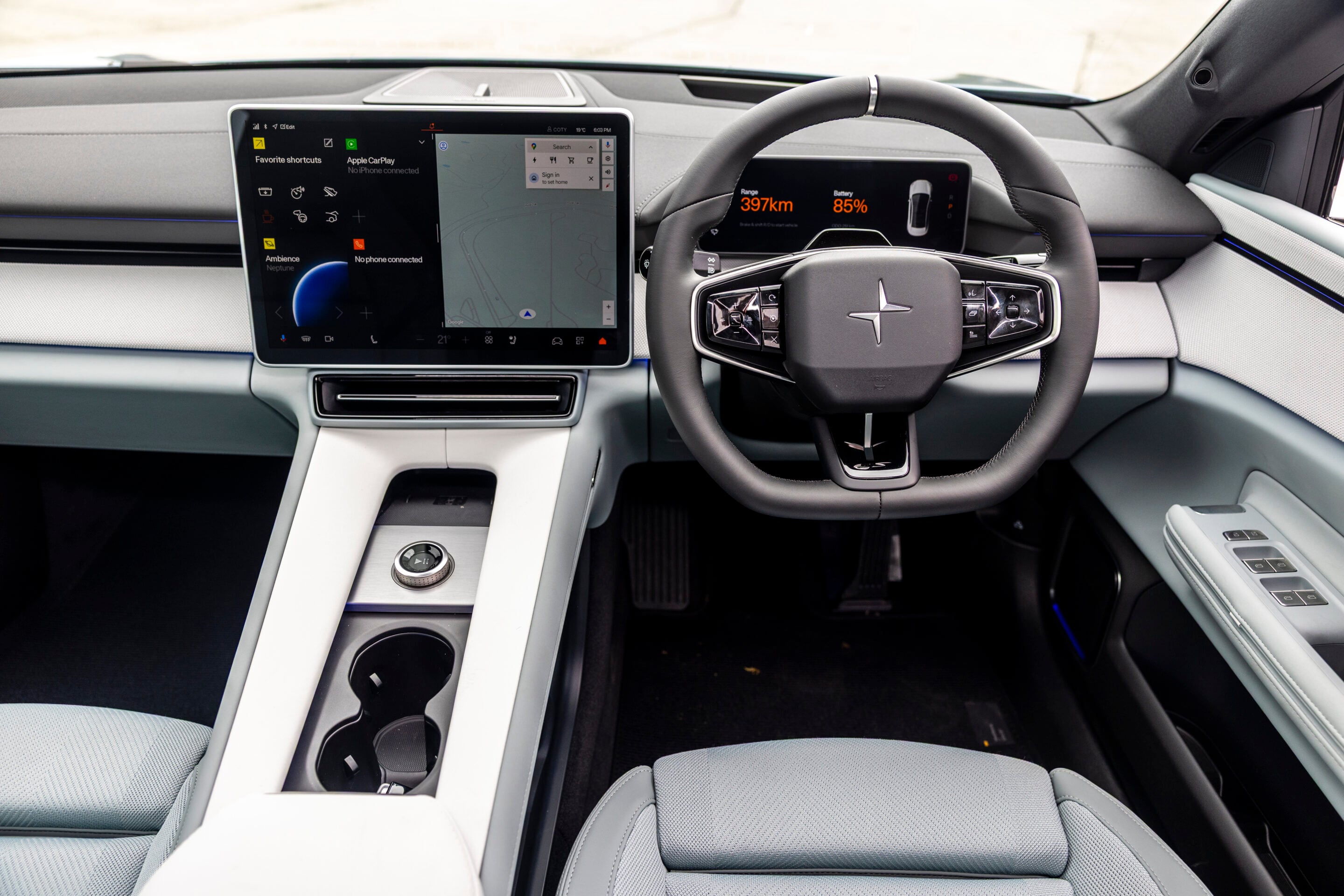 On the plus side, the Polestar 4 looks and feels well-made, and delivers premium cabin ambience, rough road thumps aside. On the move broadly, and on smoother surfaces, it’s a serene driving experience. The interior isn’t just thoughtfully appointed, it’s beautifully executed and stretches well beyond Tesla’s austerity. Front and second row space is a highlight for family buyers, along with a hefty 526L/1536L luggage capacity, and Polestar 4’s energy usage is solid in the real world if a little greedier than the standard-setting Tesla Model Y.