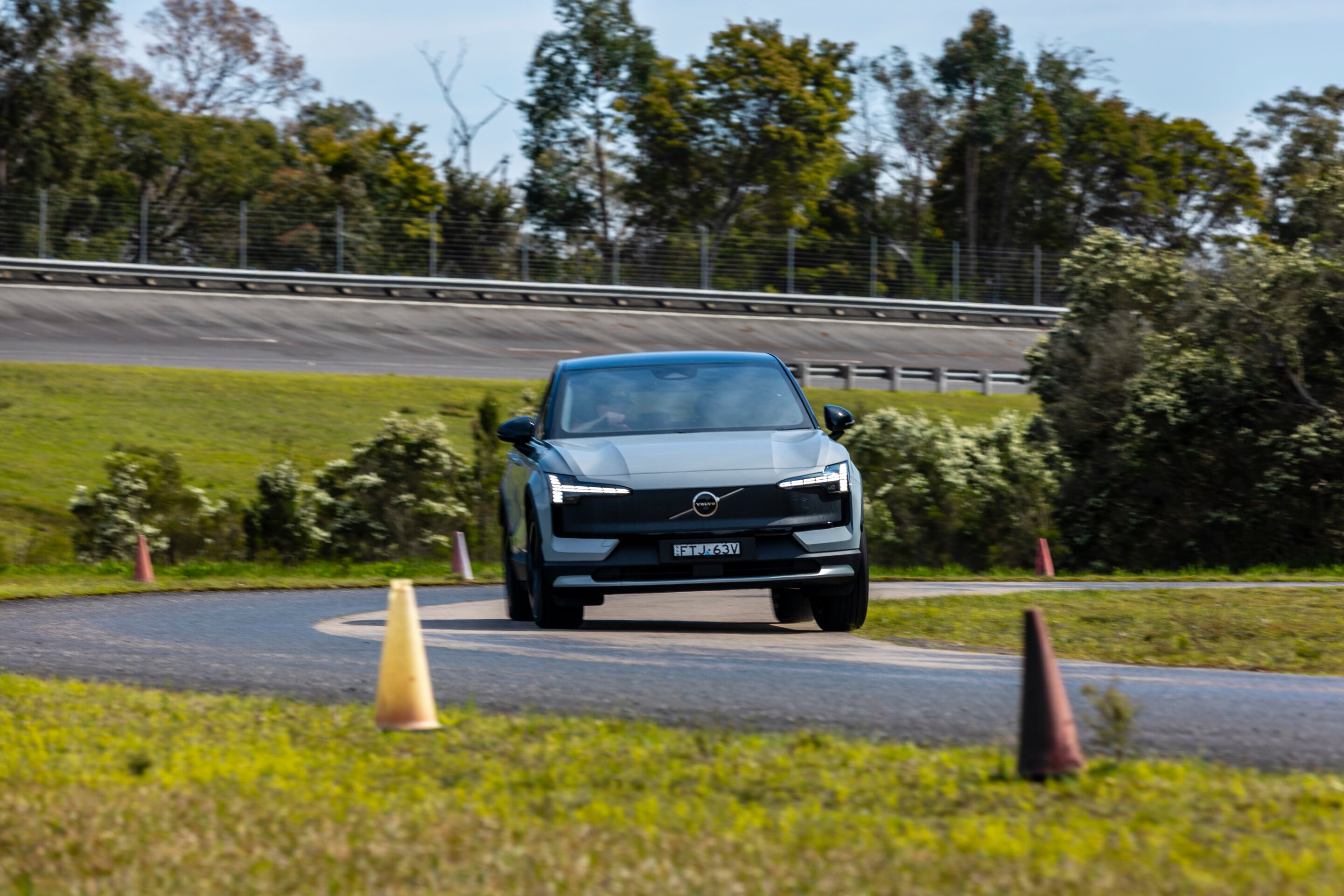 Sticking with the physics for a moment, the EX30’s ride and handling equation is likewise determined by falling apples and text books. Thanks to the kerb mass of the Cross Country, not to mention the unsprung weight of those big wheels and tyres, the engineers have been required to fit springs to suit. The end result is far from terrible, but if you pay attention, there’s a sense that the small-bump ride is being compromised by the large bump control. But the EX30 is in good company there.
