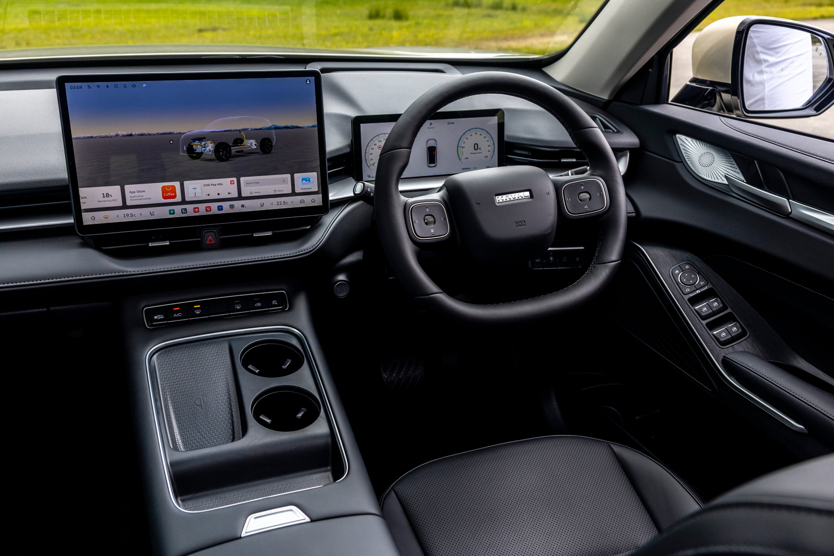 Inside, the Haval offers a classy – but not flashy – presentation that looks more expensive than it actually is. Okay, it might be a bit derivative (the speaker grilles look very Benz-ish to us) and it’s dominated by the twin info-screens, meaning the hard buttons are restricted to a single strip across the centre-stack and the spokes of the tiller.