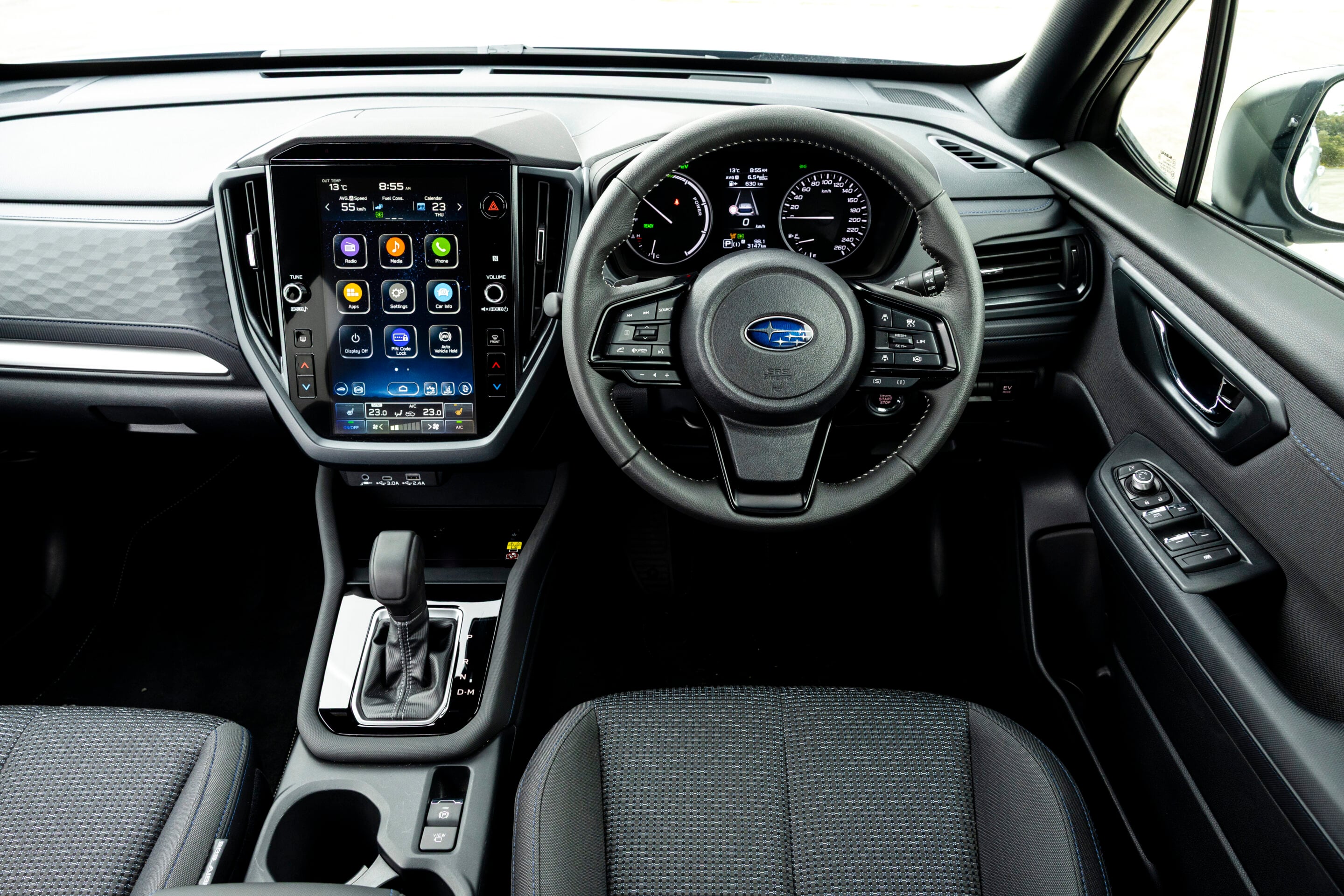 Inside, the Subaru is laid out in a conventional way apart from the 11.5-inch central screen that is mounted portrait rather than landscape. It’s nice to see there are at least some hard buttons for commonly used functions and the usual slew of USB charging points and cup-holders are present and accounted for.