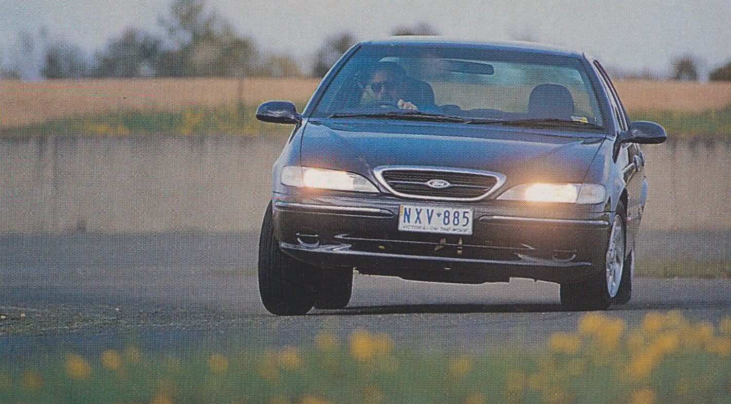 After some comparative cornering, the Fairmont’ s front and rear shoulders were visibly less scrubbed than the Holden’s.
