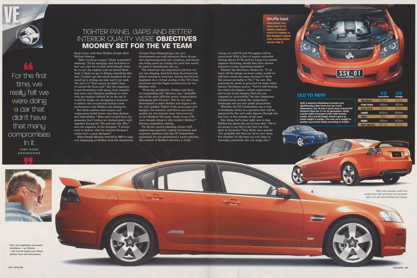 The American was impressed with how the car was shaping. And he’d done his homework before moving to Australia, having had Detroit engineers do a virtual overlay of the VE’s body structure over the Sigma architecture he was familiar with.