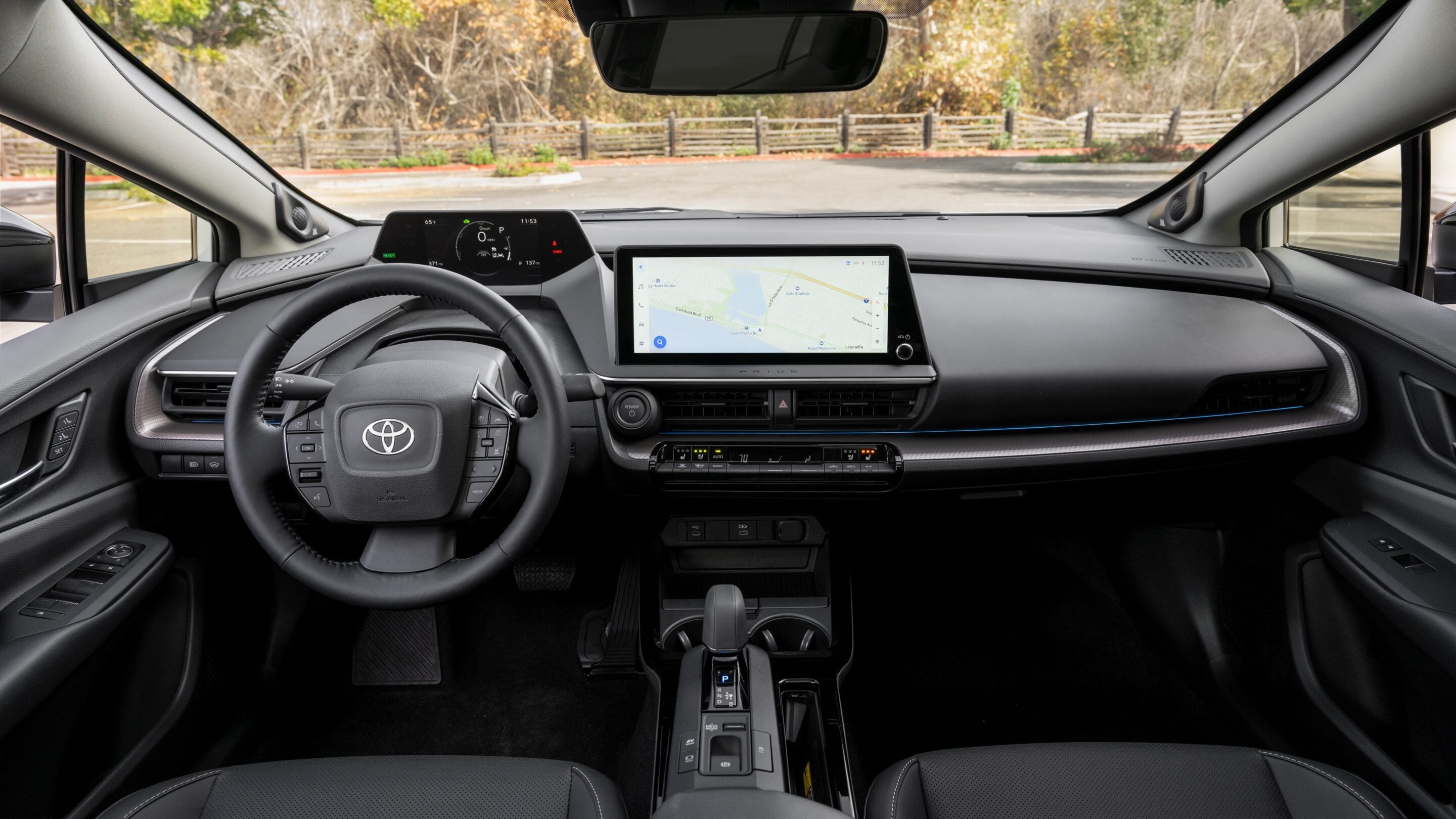 While the exterior of the Prius is downright wild compared to the ugly last model, the interior is more like other current Toyota models such as the bZ4X electric SUV with a small driver’s display atop the dashboard, a large 12.3-inch touchscreen in the centre of the dashboard and even a vertical wireless phone charger in the centre console.