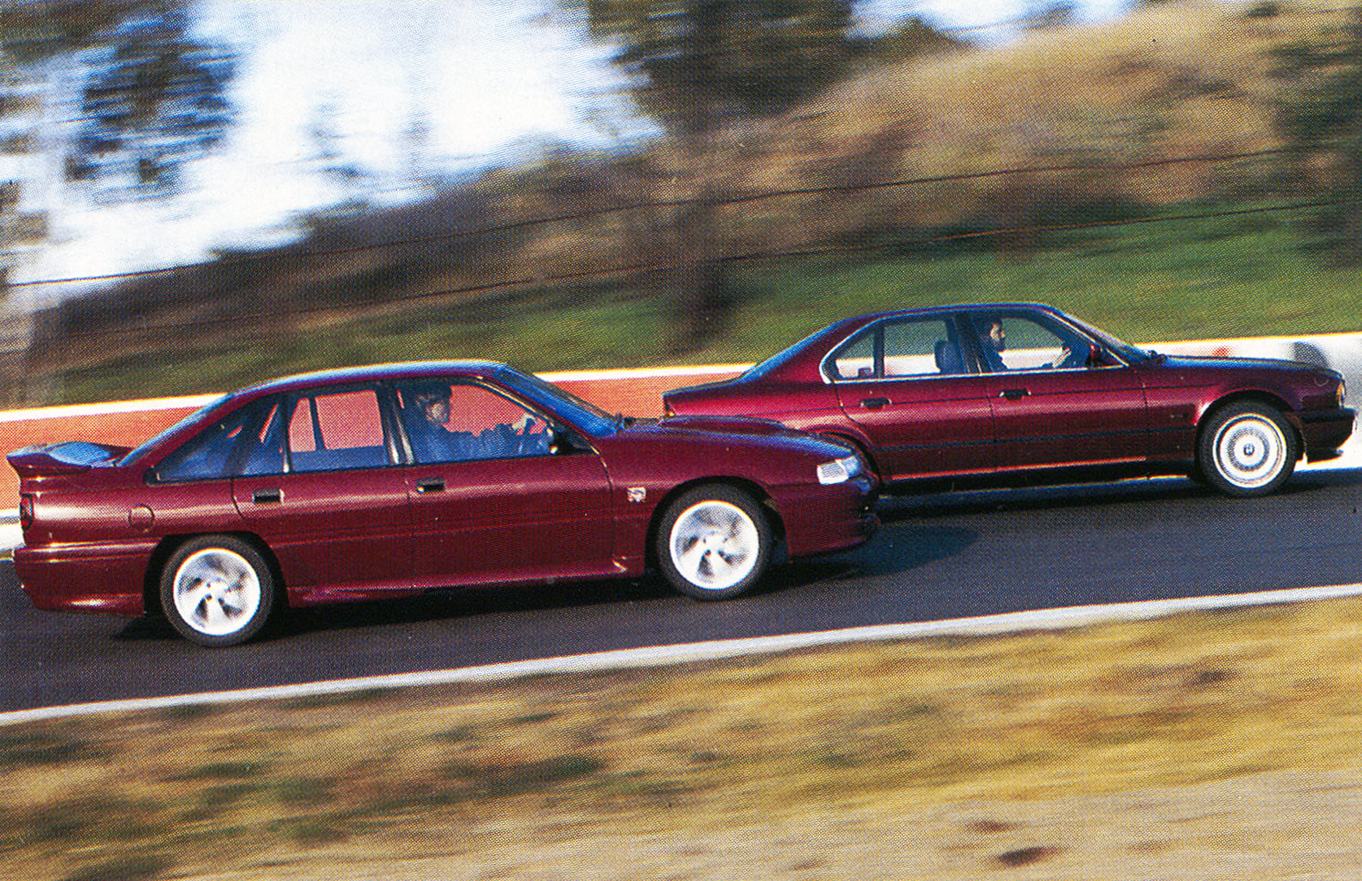 Pit Straight, Mount Panorama: Four heads swivel in unison as the Holden cruises past the start/finish line at Australian motor racing’s holy of holies. The muted rumble of a hot V8 disturbs the morning calm as four pairs of eyes take in the deep red paint, the hunkered down stance, the spoilers and side skirts which give the jelly-mould VN Commodore shape a sinister, purposeful edge.