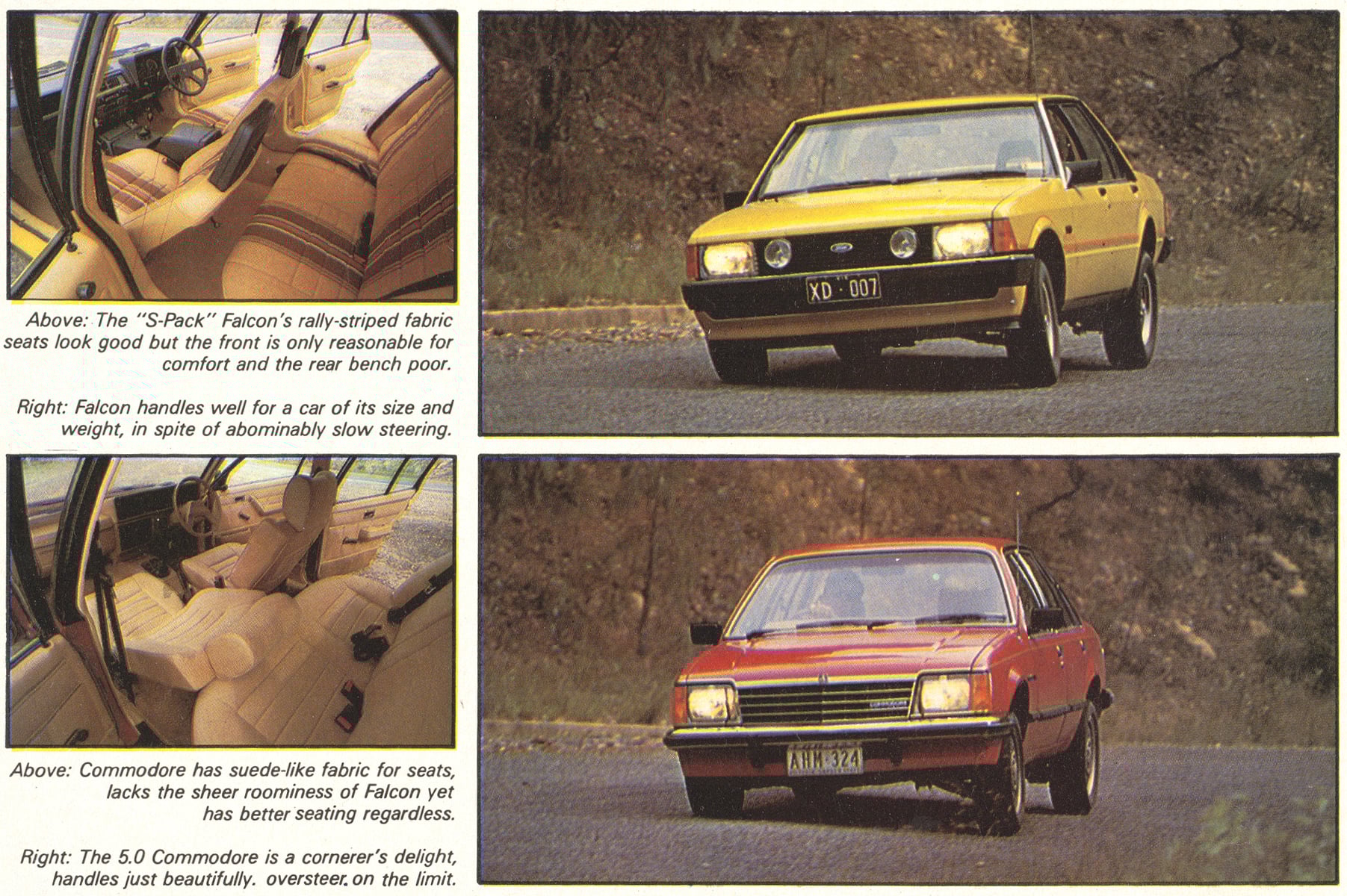 To give the Falcon its due, it has to be the best handler ever in the traditional Australian family-car size class because it gets round corners and generally handles better than any Falcon, Holden or Valiant. But it’s just too big and heavy to compare directly with the smaller, lighter, more responsive and better balanced Commodore.