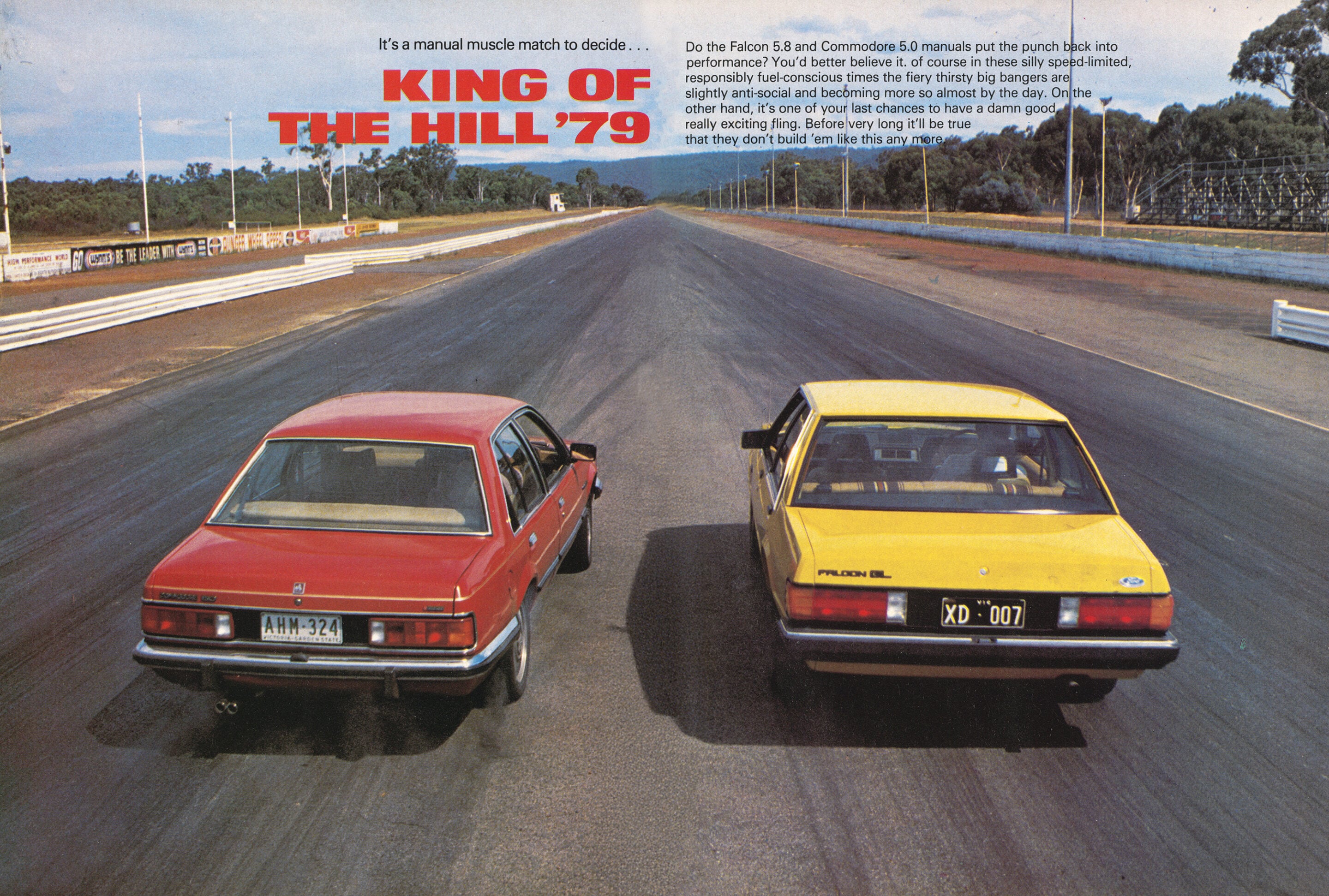 The GTS had been uplifted from ordinary to excellent performance standards (with Radial Tuned Suspension) when we pitted it against the Falcon GXL in Wheels January, 1978, for the original King Of The Hill comparison. Both were pretty reasonable performers by the ADR-depressed standards of the day, though not in the same mould as their rorty old ancestors. The GTS did the 0-400 m in 16.8 seconds and the Falcon in 16.3 seconds, a far cry from the days when GTs and GTSs used to crack 15s for the quarter mile. The Commodore and XD Falcon don’t step into the old-timers’ boots either, but are more sure-footed on their own accounts anyway … all the better for climbing the hill to kingsmanship.
