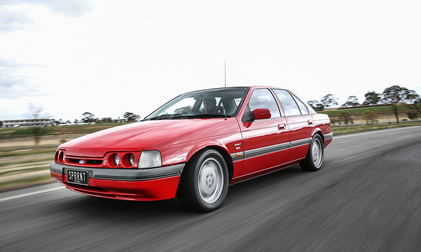Derided at the time as a symbol of Falcon’s conservatism, it’s part of the car’s character these days. Even the ’93 ED Falcon XR8 Sprint – this red example owned by Nick Blekic’s brother Mark – has one, and as I park his understated, elegantly powerful ‘sleeper’, my brain knows exactly where to reach for the handbrake.