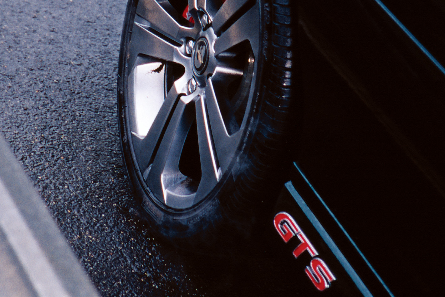 We meet HSV powertrain engineer Sam Davis at the skidpan and decide to wait and see if the rain will ease. The GTS is exactly how Wheels left it after the Y Series launch at Lang Lang several days earlier. All Davis has done is a spanner check and pumped the front tyres up to 2.6bar (38psi).