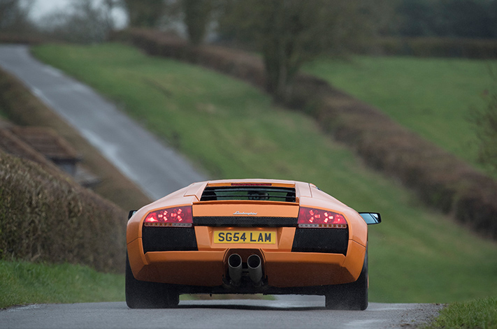 But it’s the cabin that gives the game away – the ‘MURCIELAGO’ legend embossed in the plastic sill protector worn down by the thousands of backsides that have slid across it, and the logo on the fuel filler release button scratched by the thousands of times it has been pressed.
