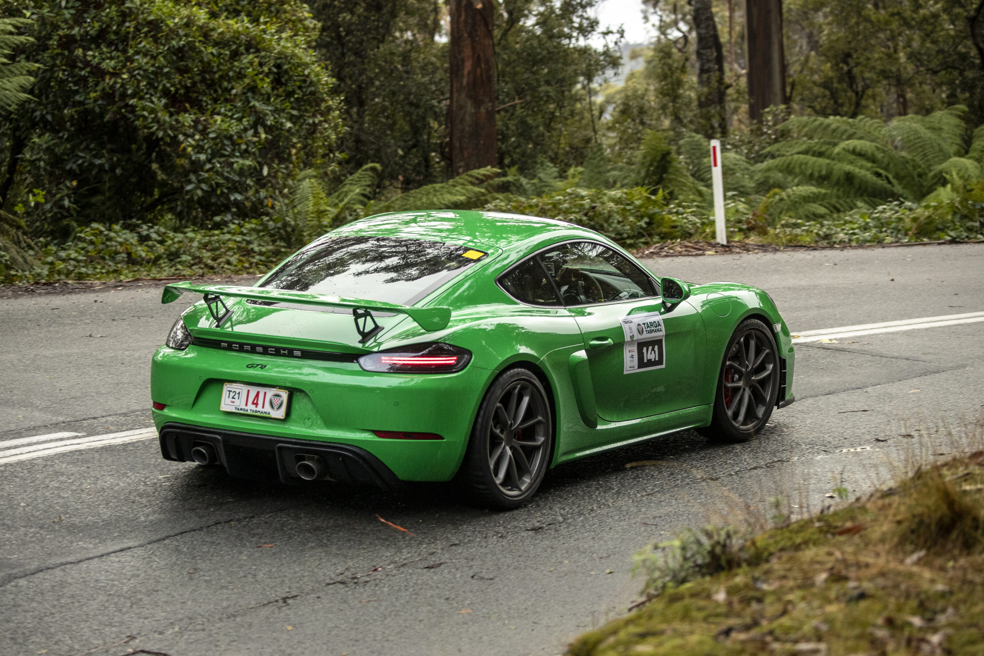 And at Targa, you notice the extra urge. After the morning’s staccato stages, the afternoon is spent traversing the bitumen around Mount Roland, and the roads are phenomenal. Wait at the timing gate, floor it, and you’re quickly into the thick of it; Tasmania serving up a heady cocktail of fast sweepers with brilliant sightlines and narrow, technical sections with tightening apexes. And the GT4 simply devours them.
