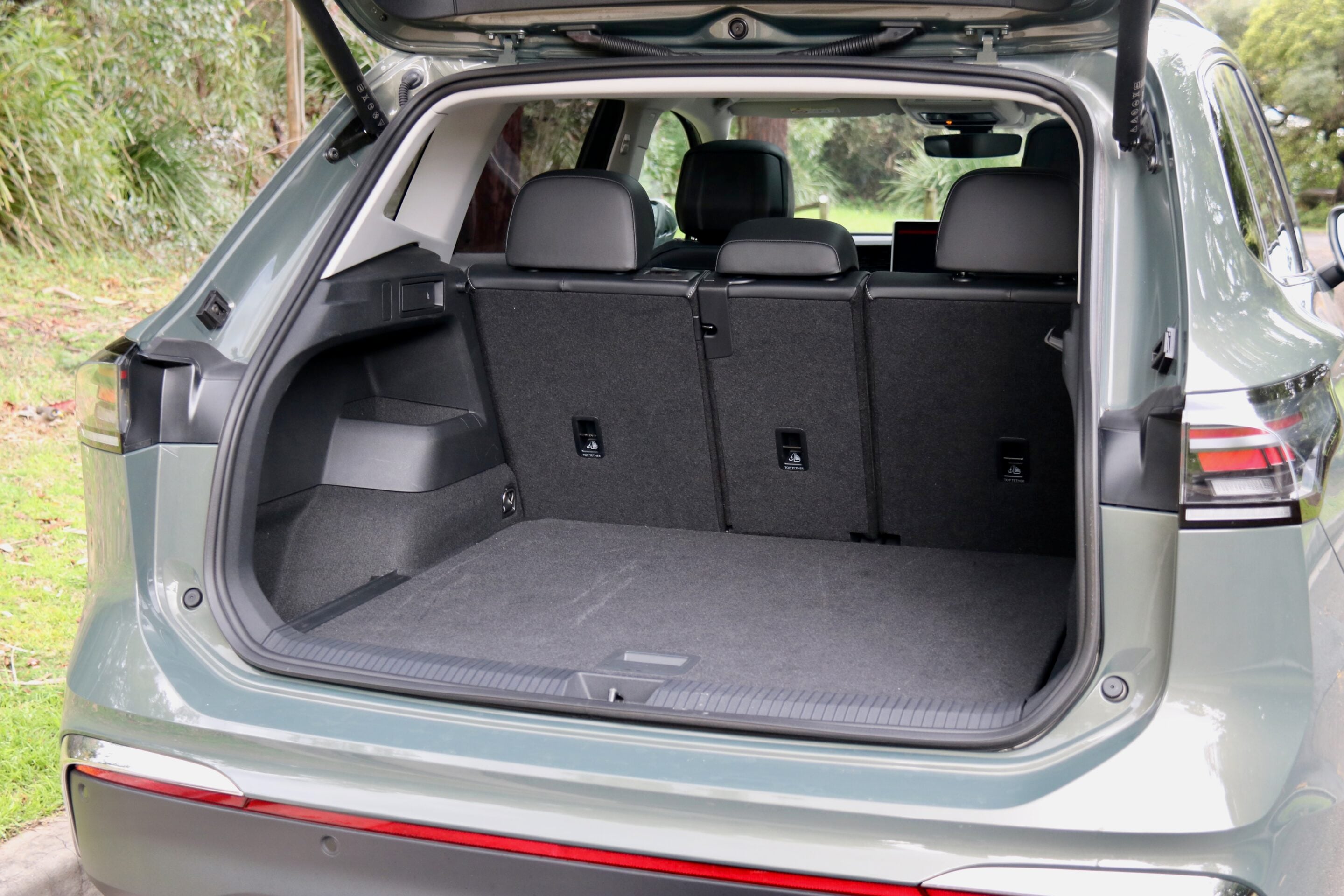 Boot size: Seven seat: 345 litres (third row up), 850 litres (third row folded), 1905 litres (all rear seats folded); five-seat Tayron 150TSI Life: 885 litres (rear seats up), 2090 litres (rear seats folded)