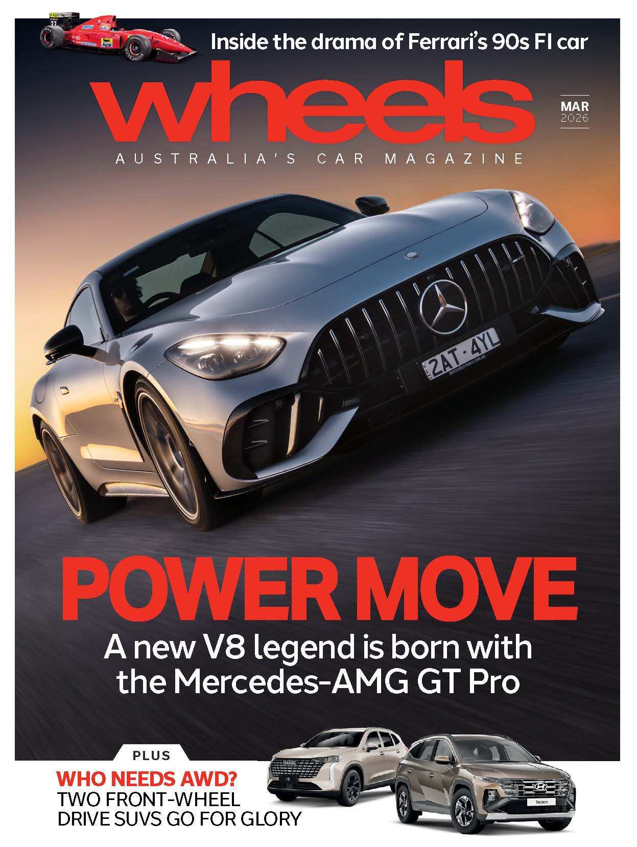The March 2026 issue of Wheels magazine, on sale Monday March 9, featuring the awe-inspiring Mercedes-AMG GT 63 Pro on the cover.