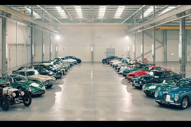 Either way, the subtle tease is part of a spectacular show in which three gun drivers slide, burn and thrash around the company’s new Welsh premises in a heap of very expensive metal from every era of Aston Martin’s colourful history.