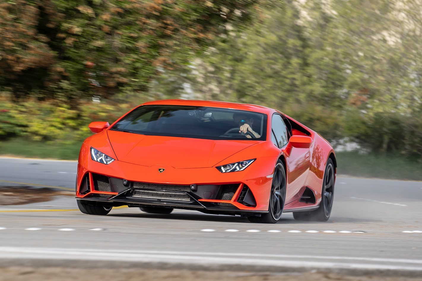 It also gains rear wheel steering, borrowed from the Aventador SVJ, to boost high-speed stability and agility at lower speeds. But while the Performante wears ostentatious forged carbonfibre aero parts for maximum grip at speed, the Evo has redesigned bodywork that does away with big spoilers in favour of more subtle, streamlined looks.