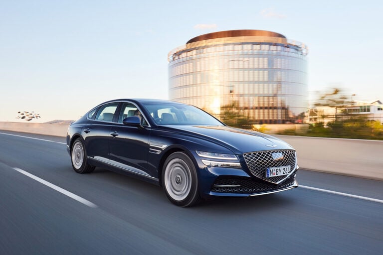 Genesis says the trick turbo-diesel delivers a respectable 6.6L/100km on the ADR combined cycle, which is impressive, given the G80’s circa-2000kg kerb weight.