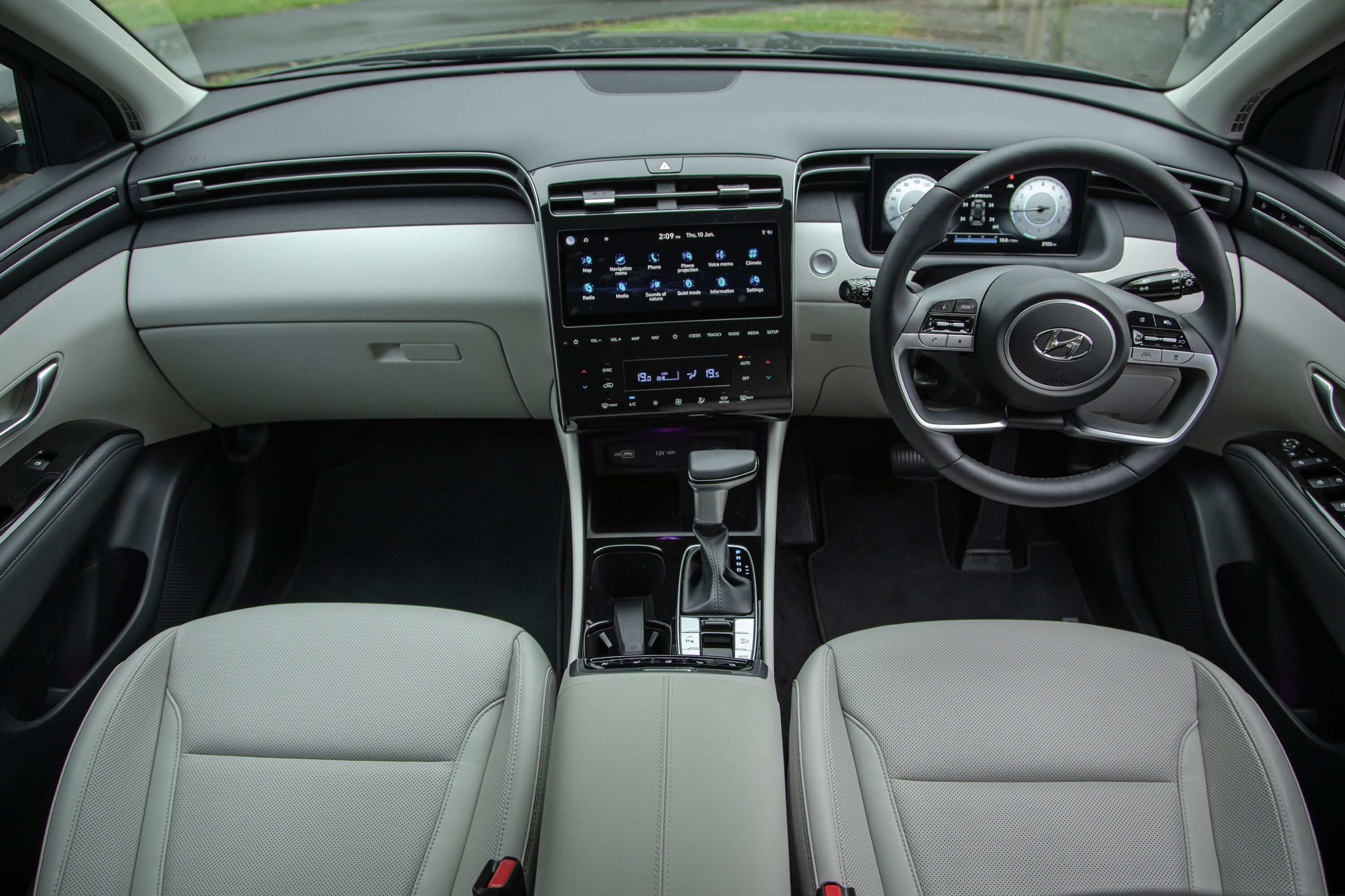 The Tucson Hybrid claims a WLTP-rated combined fuel economy figure of 5.9L/100km for the front-wheel-drive model, and 6.6L/100km for the all-wheel-drive.