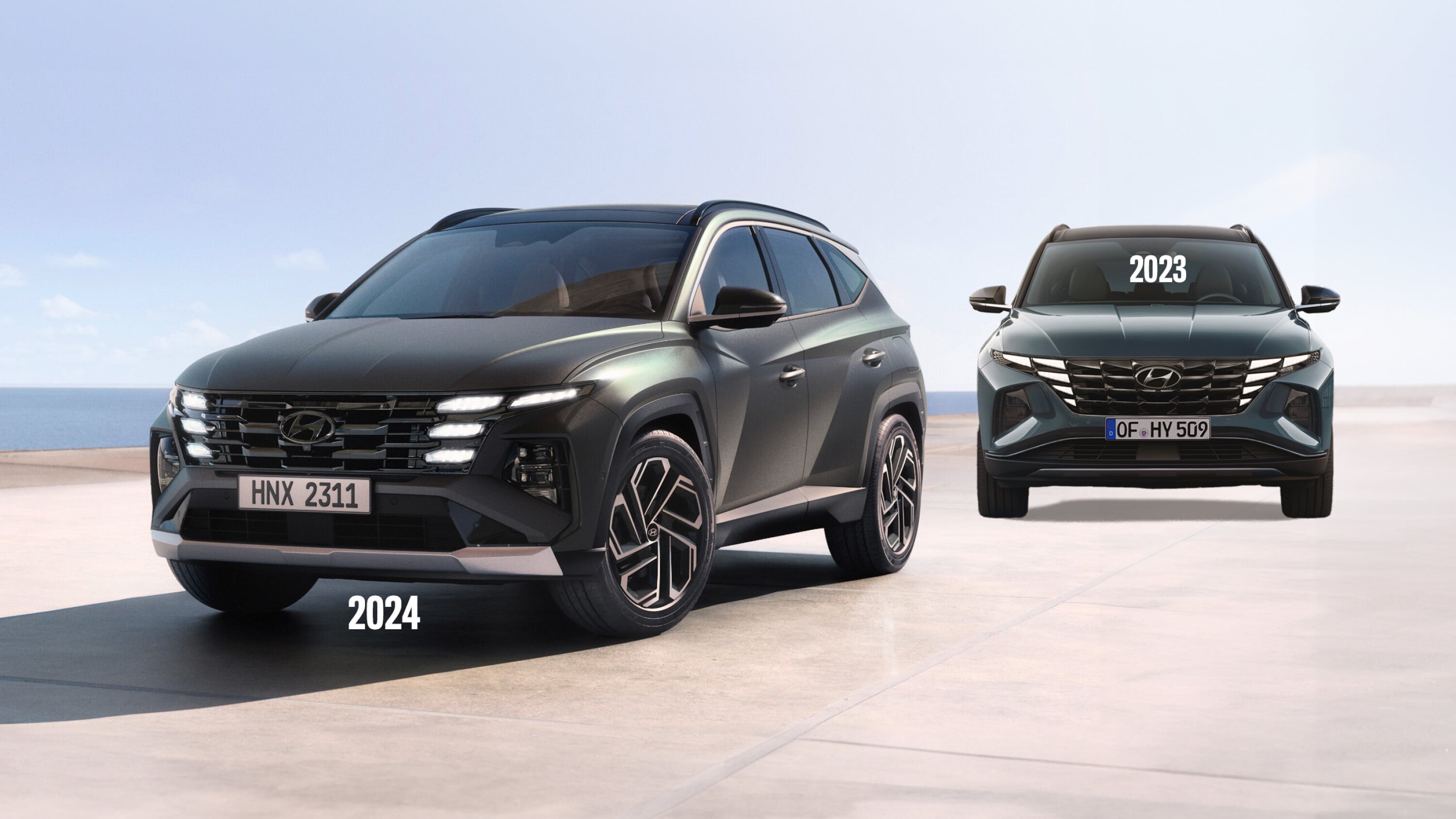 Below: The current 2023 Hyundai Tucson, in Highlander form