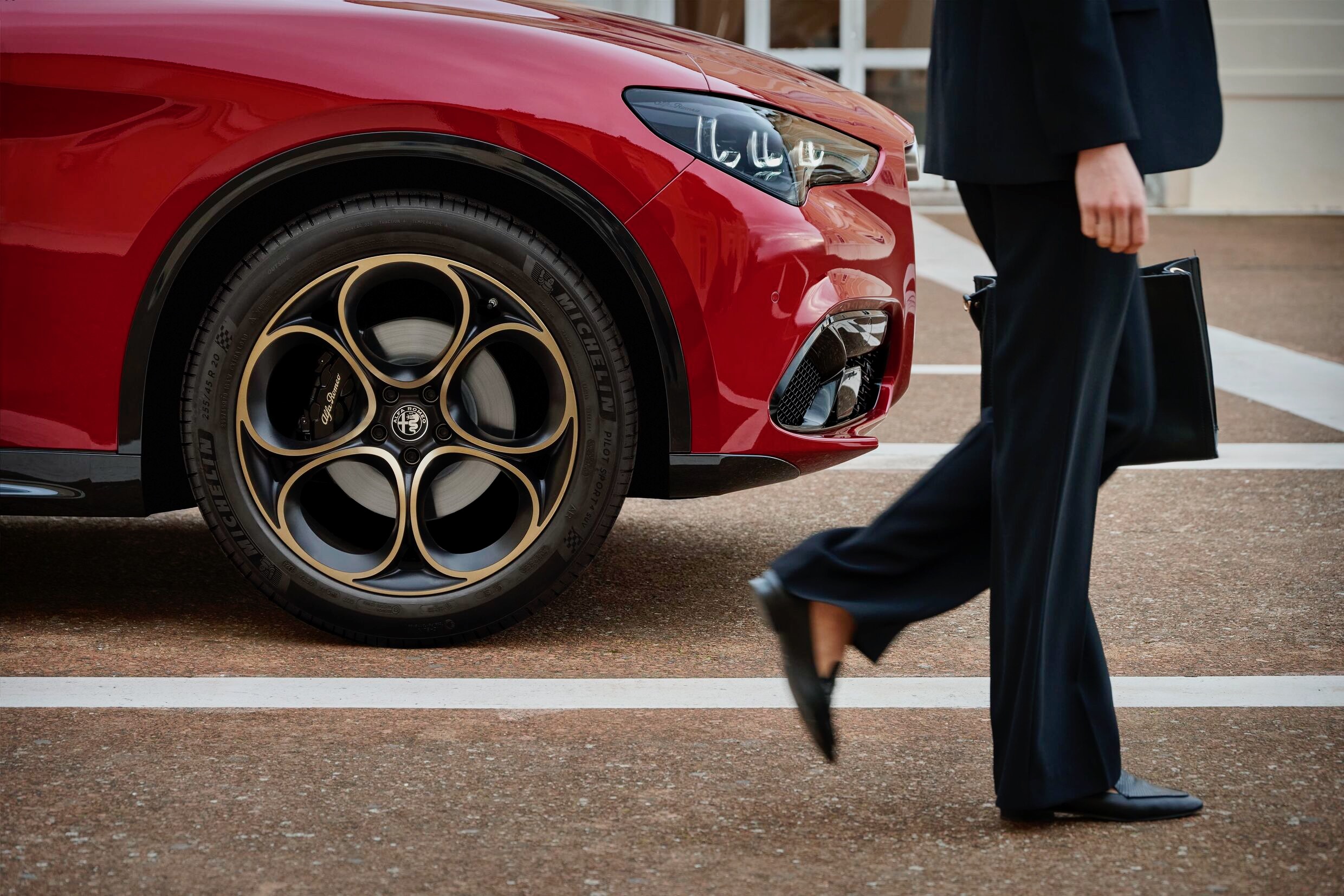 The new Alfa Romeo Intensa Special Series models are identified by new exterior features on each, including golden detailing on the wheels, Italian flag emblems on the mirrors and a sunroof fitted as standard equipment. The Tonale and Stelvio feature 20-inch alloy wheels as standard, with the Giulia fitted with 19s instead.