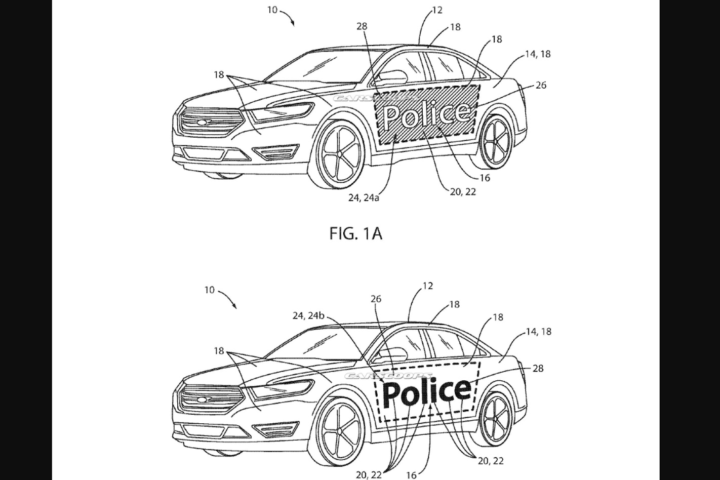 The patent drawings discovered by carscoops.com show the system applied to Ford US law enforcement vehicles, allowing a Police Interceptor to masquerade as a standard Taurus full of civilians, until someone breaks the law, at which point the vehicle transforms into a fully illuminated cop car, ready to bust some asses.
