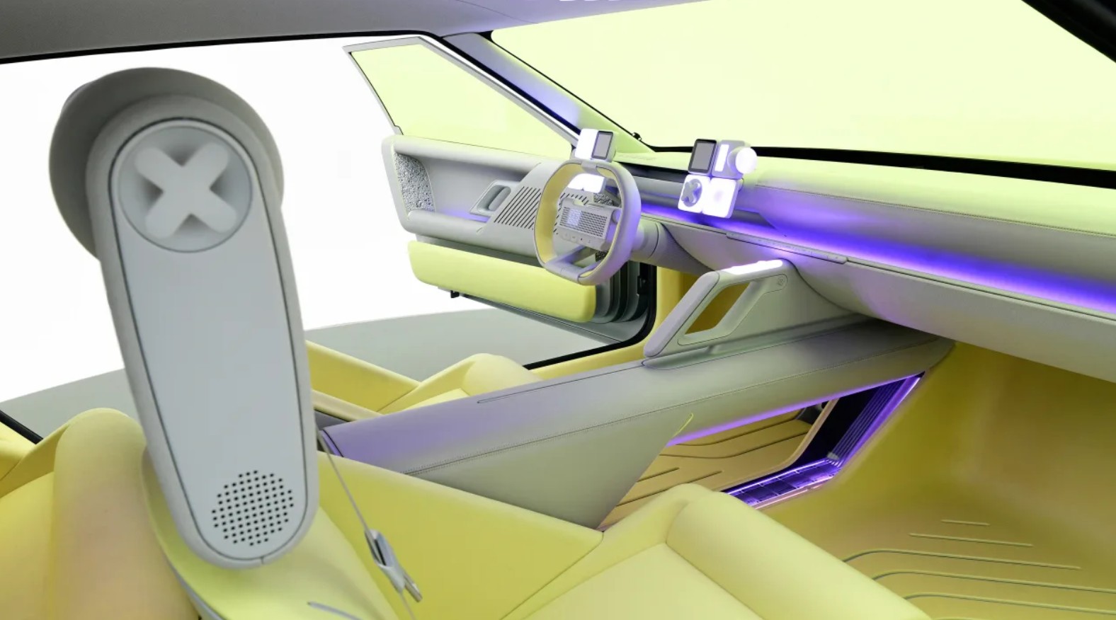 Other styling flourishes include what appear to be twin exhaust outlets but are in fact speakers to deliver an ‘emotive experience through sound’, plus playful touches such as “May the downforce be with you” etched into the oversized rear diffuser. That diffuser, like the coach doors, will be dropped for production.
