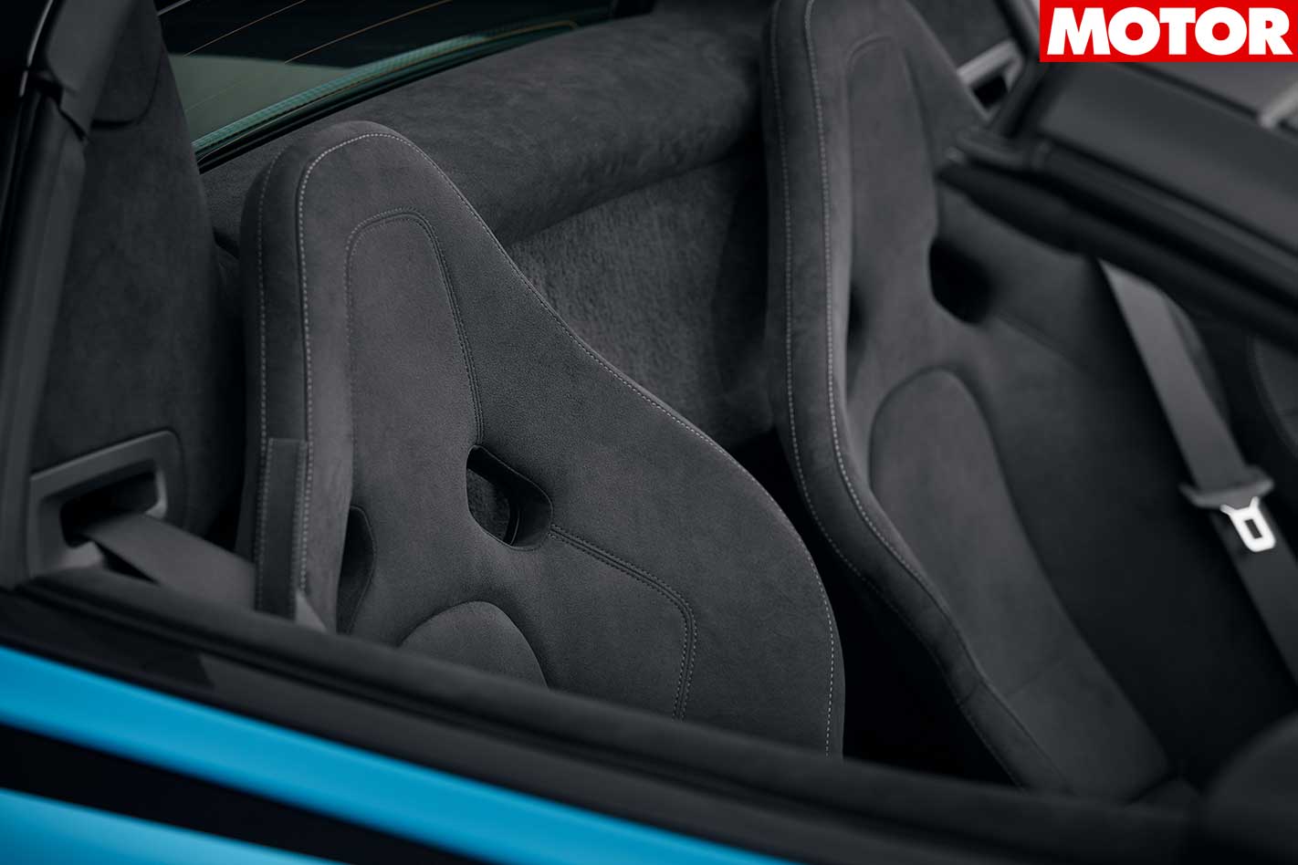 Outside, lighter 10-spoke alloys save 15kg, while other carbon fibre options are available per each customer’s wishes.