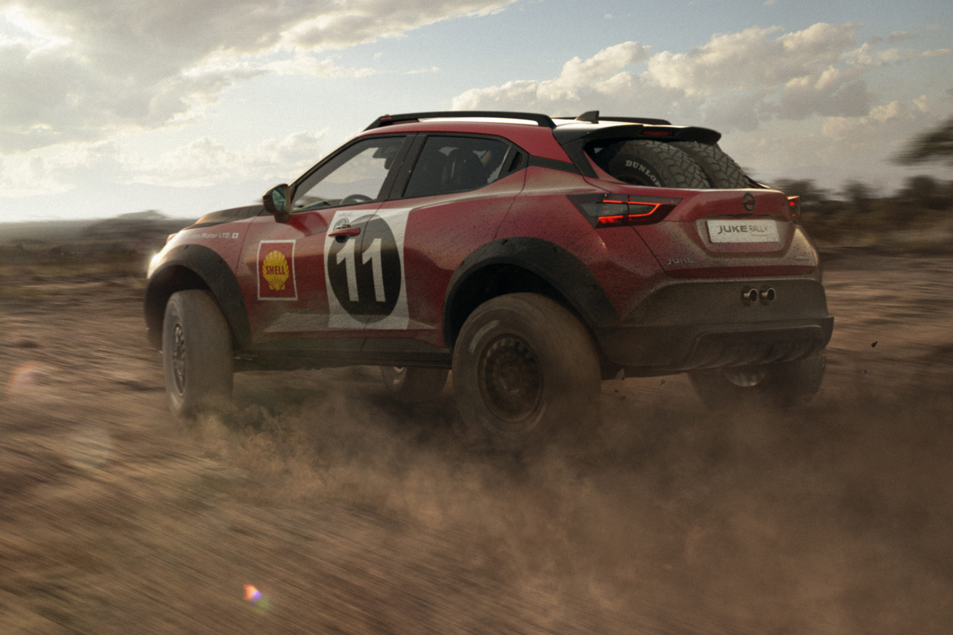Nissan has unveiled a Juke Rally Tribute digital concept today, designed to celebrate the 50th anniversary of the legendary 240Z sports car’s East Africa Rally victory – and remind us there’s a new Z car coming.