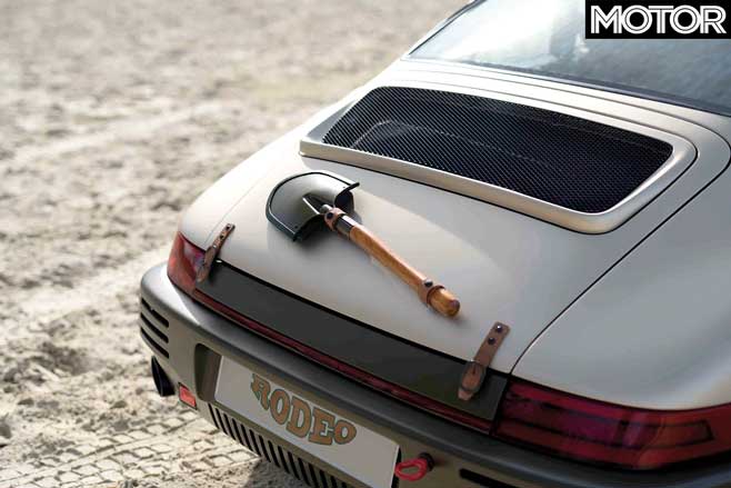 Though it evokes the memory of Porsche’s Paris-Dakar rally cars, the Rodeo was inspired by more opulent settings on the other side of the world, namely the Rodeo Drive Concours d’Elegance of Beverley Hills.