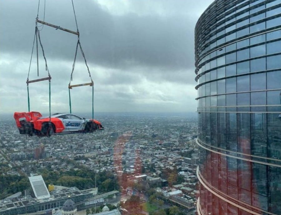 The process of placing the McLaren at such dizzying heights was an engineering accomplishment in its own right, which Portelli documented on his social media accounts. Specialist cranes and crews were tasked with lifting the car, a three-million-dollar machine weighing more than a tonne, hundreds of metres into the air. Each stage required exacting precision – any slip could have spelled disaster.