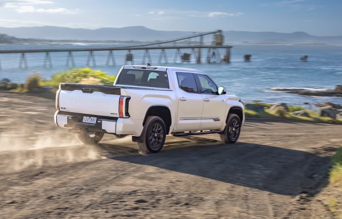 There’s no further information available at this stage, and a V8 engine is at least currently unlikely, too, given the V6 petrol engine used in current model Tundras. The version Toyota sells in Australia (main and below) gets a 3.5-litre, V6 twin-turbo hybrid powertrain, mated to a 10-speed automatic, generating 326kW and 790Nm.