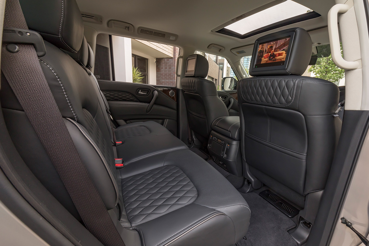 Passengers in the middle row will at least be distracted from their unsupportive seat cushions by the rear entertainment screens, which now measure eight inches across rather than the old model’s seven and feature a higher resolution, a new HDMI auxiliary input, and can operate independently of each other while sending sound to wireless headsets. Not bad, but in an age where smartphone mirroring, all-electronic dash displays, high-definition graphics and slick touchscreens are fast becoming the norm, the QX80’s infotainment package still seems a step or two behind the leaders.