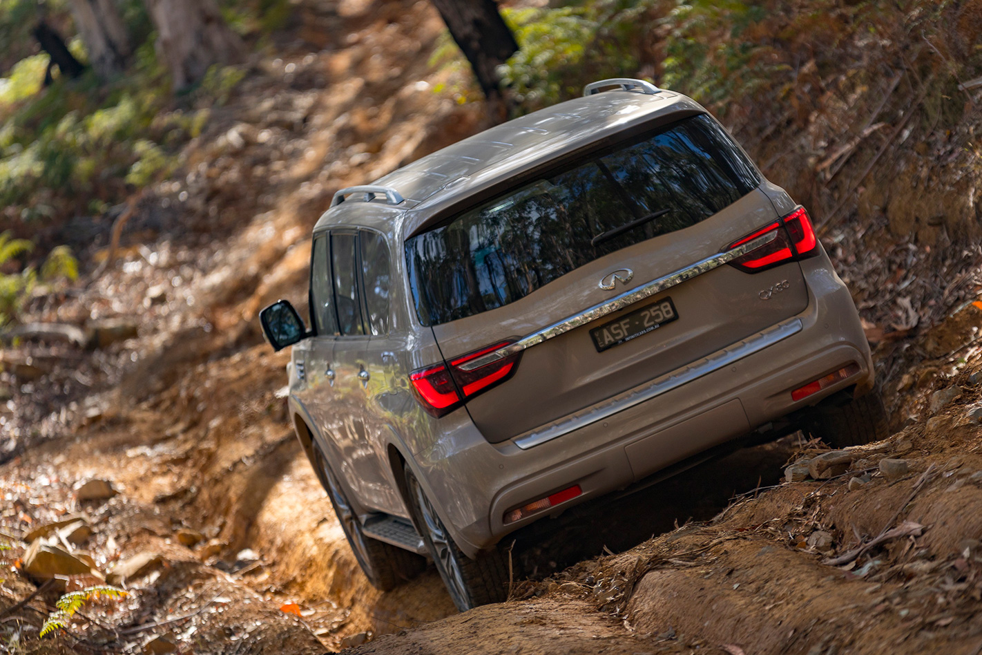 We burned more than 16.0L/100km during the updated QX80’s local media launch, but that wasn’t unexpected given the route incorporated a detour through parkland to showcase the QX80’s off-road chops. Infiniti doesn’t want us to forget that although the exterior might have a fancier sheath, underneath it all lays the capable 4×4 hardware of the Nissan Patrol. With a proper dual-range transfer case, multiple drive modes (for rock-hopping, sand driving, dirt and road), plus a locking rear differential, the QX80 promises to take its passengers further than the average luxo-barge three-row SUV.