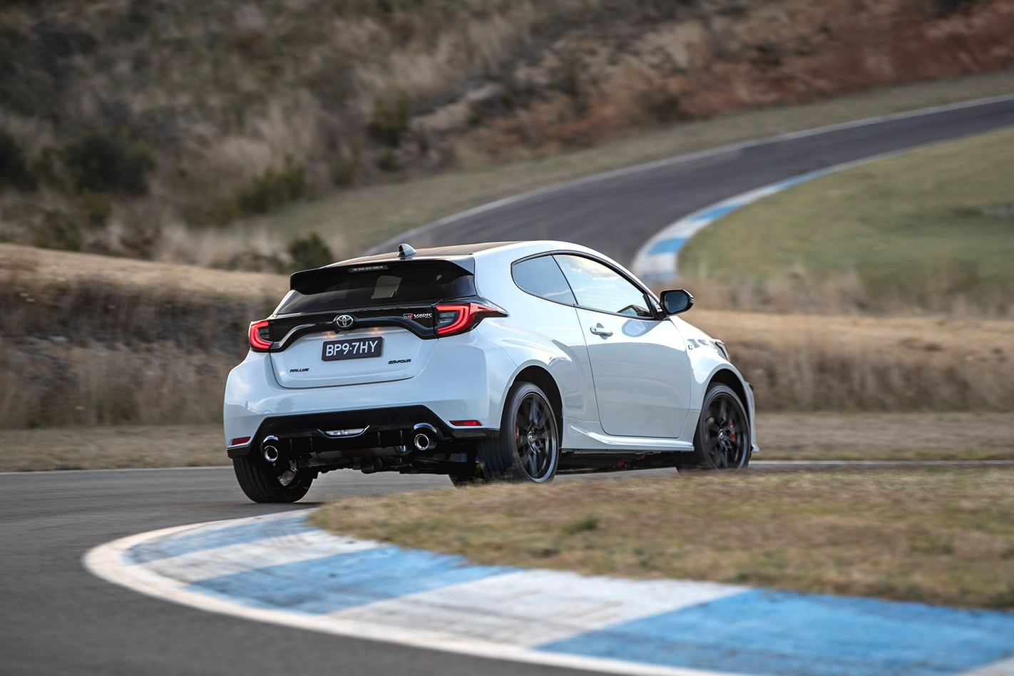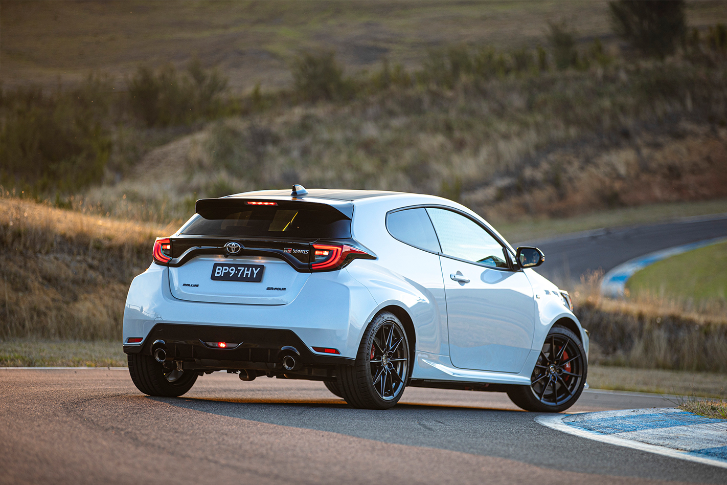 Toyota laid on the Sutton Road driver training complex in Canberra for the Rallye launch with access to its tight, challenging hill course and a motorkhana-style test on its sodden skidpan. To be honest around the former the differences between the standard car and the Rallye were slight; it’s a circuit that plays to the GR Yaris’s strengths and with ESP fully on any potential wheel slip was mopped up by the traction control before the diffs could really take over.