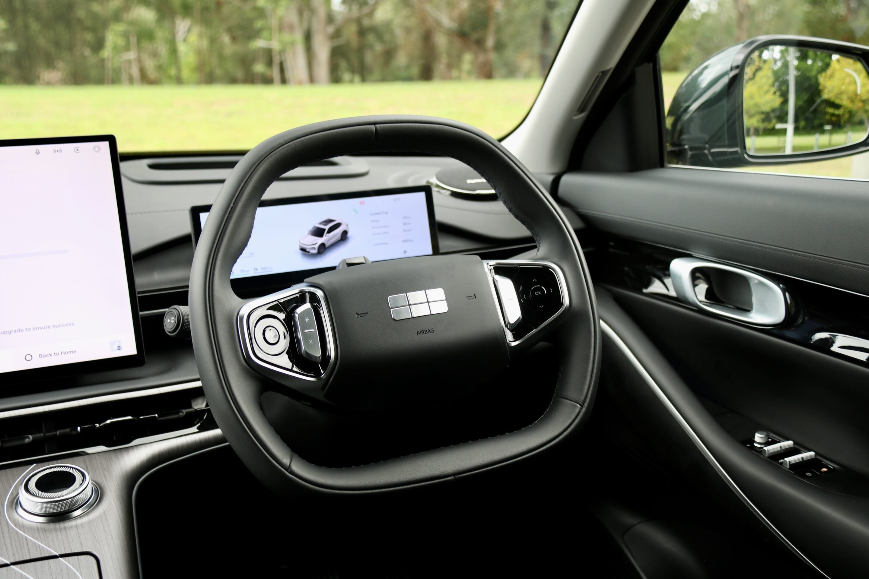 You can work through brake regeneration settings, to find the one you like as well, with moderate the one we favoured during our first drive, and the brakes felt pretty regular once you got used to the initial bite point. The steering is relatively light, even at low speed, and if Geely were to offer a sportier or more powerful version, firmer steering feedback would be the go.