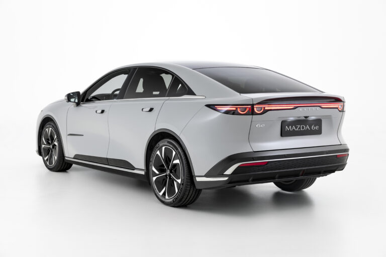 Pricing and final specification will be announced closer to launch in 2026, but here’s what we know so far. First up, Mazda has told us to expect a price below $55,000 before on-road costs, which is impressive. If it can bring the electric sedan in around that number, Aussie buyers will take notice. Mazda 6e gets a 78kWh lithium ion phosphate battery pack. That’s good for a claimed driving range beyond 500km, with a single motor mounted at the rear axle. There’s 190kW on offer and charging capability from 30 to 80 per cent in as little as 15 minutes under optimal charging conditions.