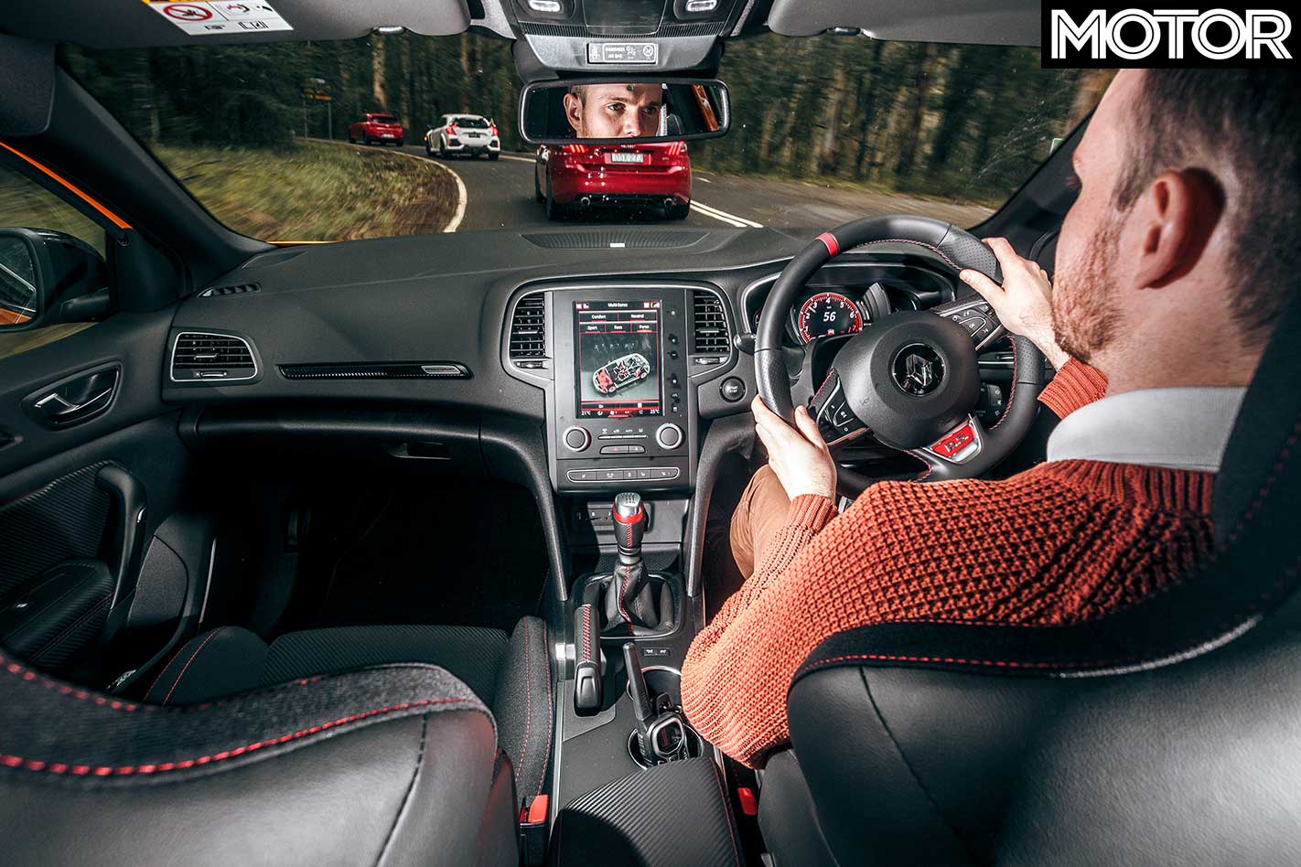 Helpfully, the R.S. Drive button in the centre of the dash allows the selection of a sportier drive mode with one touch. The Mégane looks great, however, the wider tracks giving it a proper bulldog stance, with menacing black 19s and neat touches like the giant rear diffuser and Aventador-like single exhaust outlet. It’s the looker of this quartet.