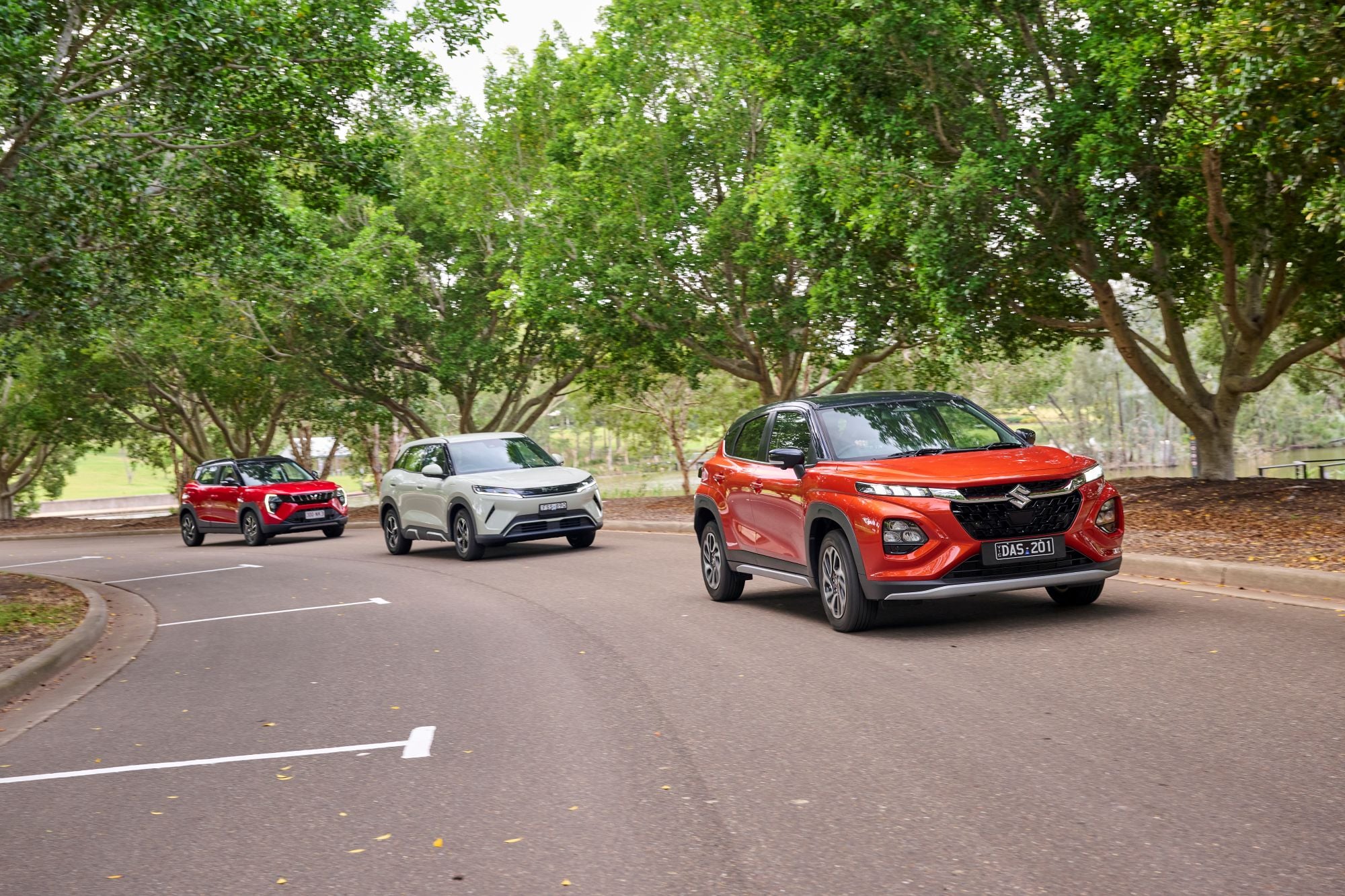 Buyers shopping with both eyes on value should budget for anywhere from $25-$35k. And the good news here is that there are plenty of decent options within that price range. The three we’ve chosen here are all new to the Australian market, and bring different philosophies to the table – one a three-cylinder petrol FWD, another that claims to be a hybrid but isn’t, and finally the most affordable, full battery-electric SUV in Australia today.