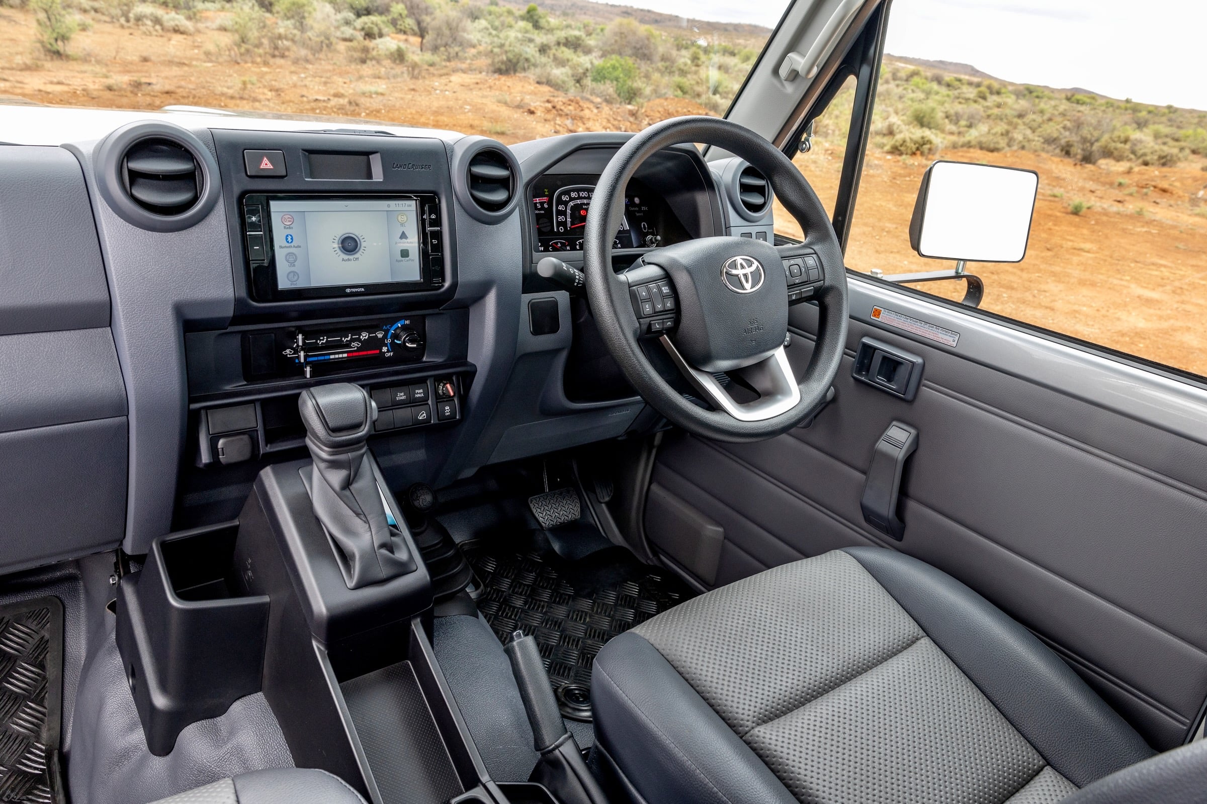 One bit of tech you won’t find in the Toyota is onboard scales, accessed through the infotainment screen to estimate payload weight as items are added. For the LC70, you’ll need to find a weighbridge.