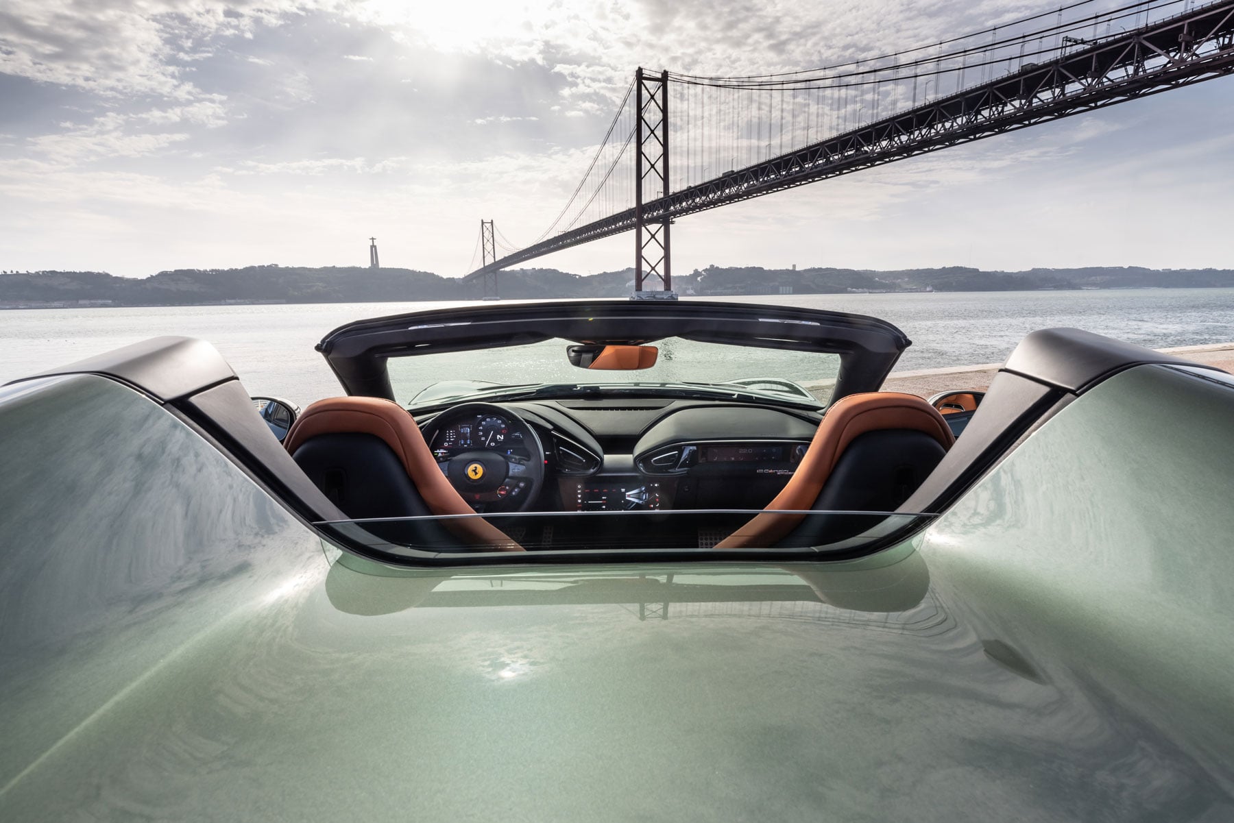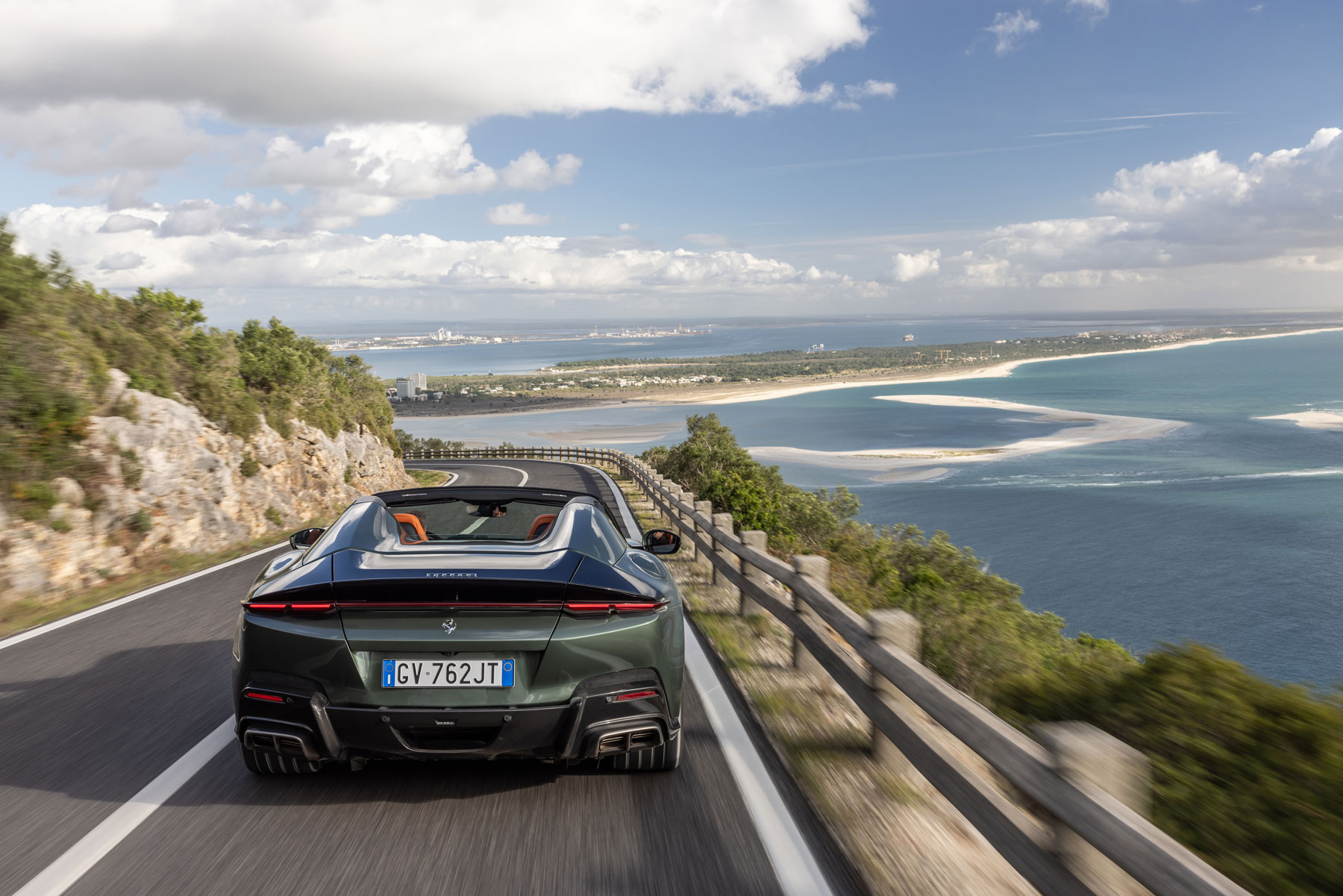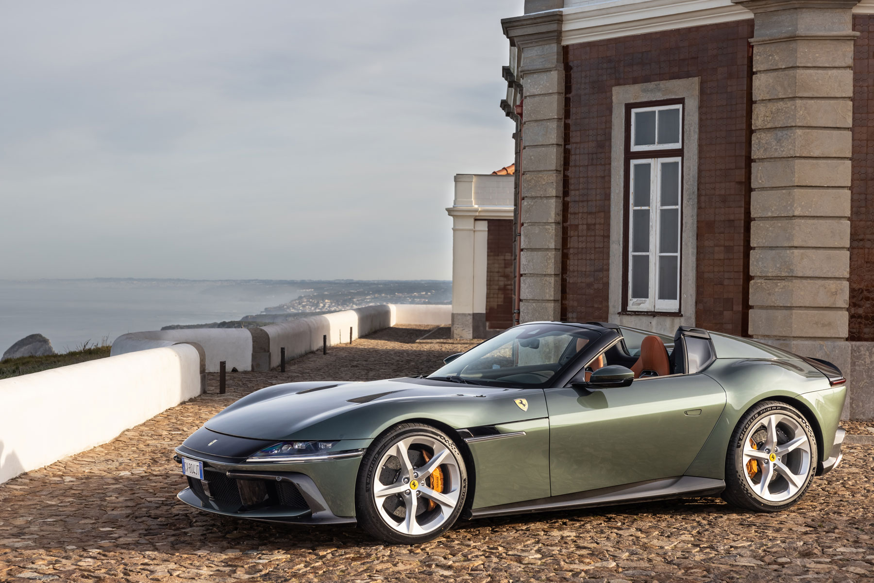 Today feels very Atlantic. It’s blustery and the wind is whistling through the flagpoles that stand by the lighthouse, the lanyards balefully clanging against the poles. It’s not really convertible weather, but if you have a box-fresh Ferrari 12Cilindri Spider at your disposal, you’re going to want to let a bit of that fresh salt tang in.