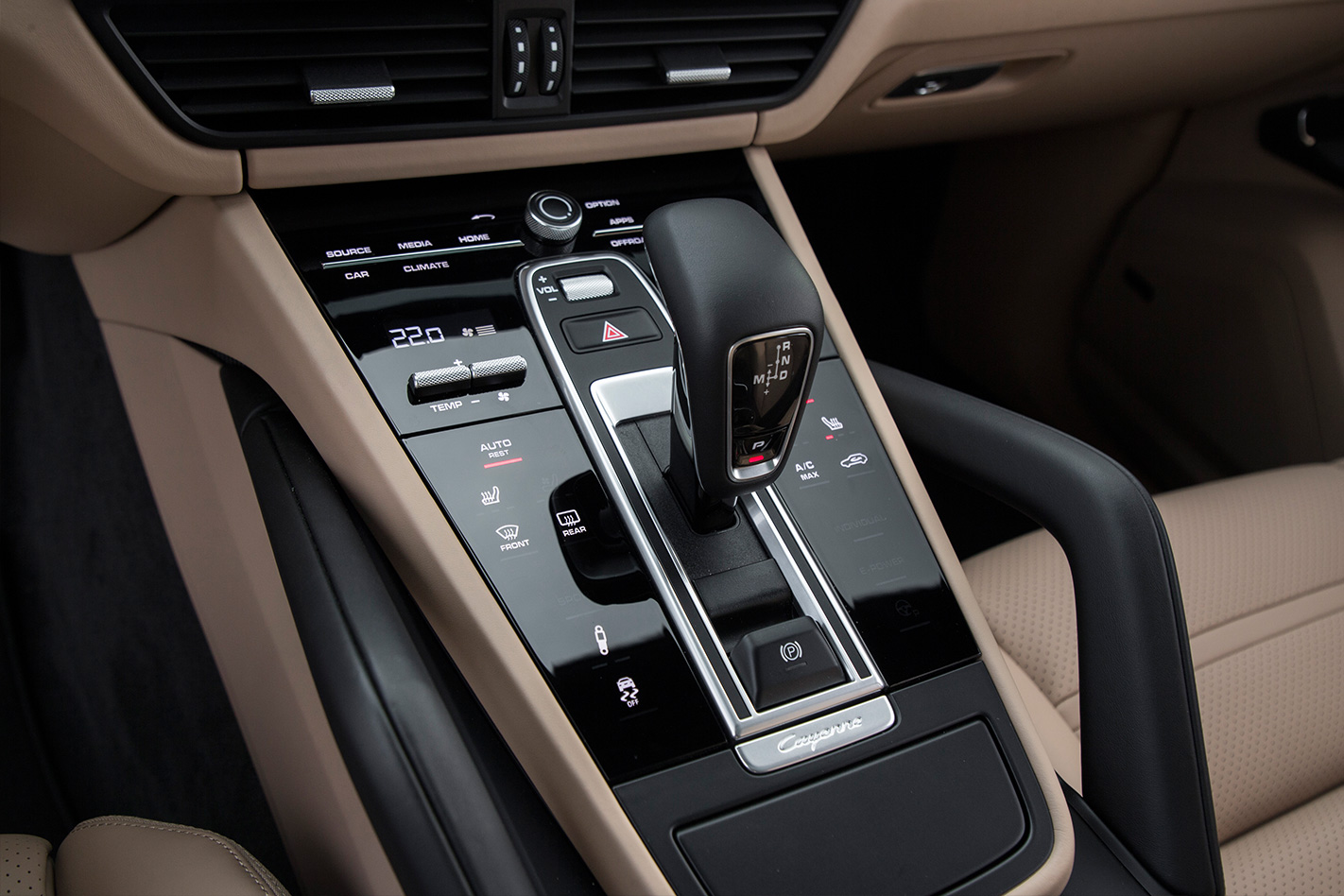 The Cayenne S is a wholly cosseting place to cover kilometres, with an eerily silent and smooth ride even over the somewhat agricultural local roads. The interior’s been tidied, the most obvious beneficiary being the simplified fascia design. Where the previous version’s dash was littered with a multitude of switches and, even worse, blanks for lower-spec cars, the new Cayenne uses solid-state panels with haptic switches and a massive 12.3-inch screen.