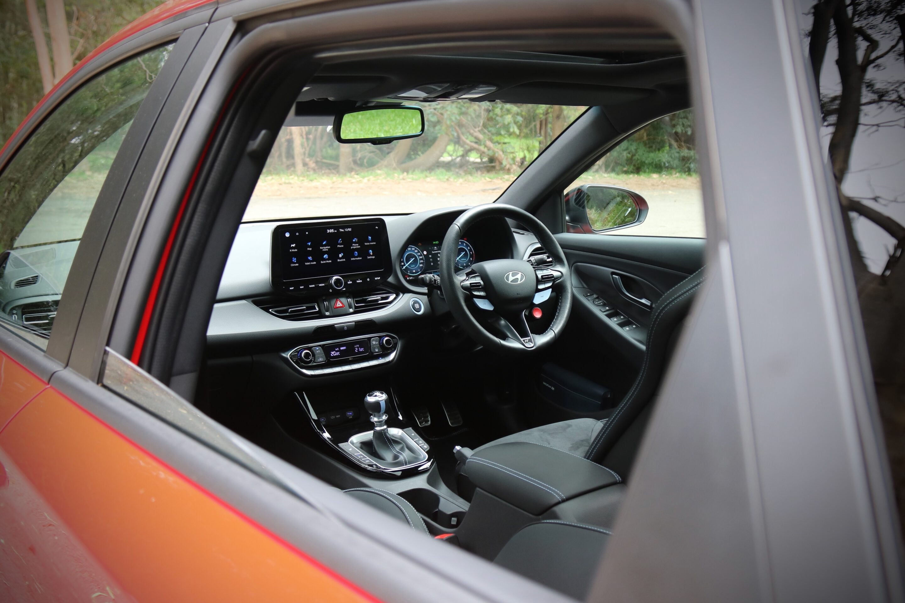Jump into the cabin of the i30 N and you’d be forgiven for thinking that you had time travelled back to 2017 when this generation of i30 hatchback was released. There are no huge screens, wireless phone mirroring or lashings of synthetic leather trim everywhere. Instead, you get a relatively small (for 2026) 10.25-inch touchscreen with Hyundai’s older software, wired smartphone mirroring and a good dose of hard plastic dotted around the cabin. Don’t worry, quality is still good, as it was in 2017.