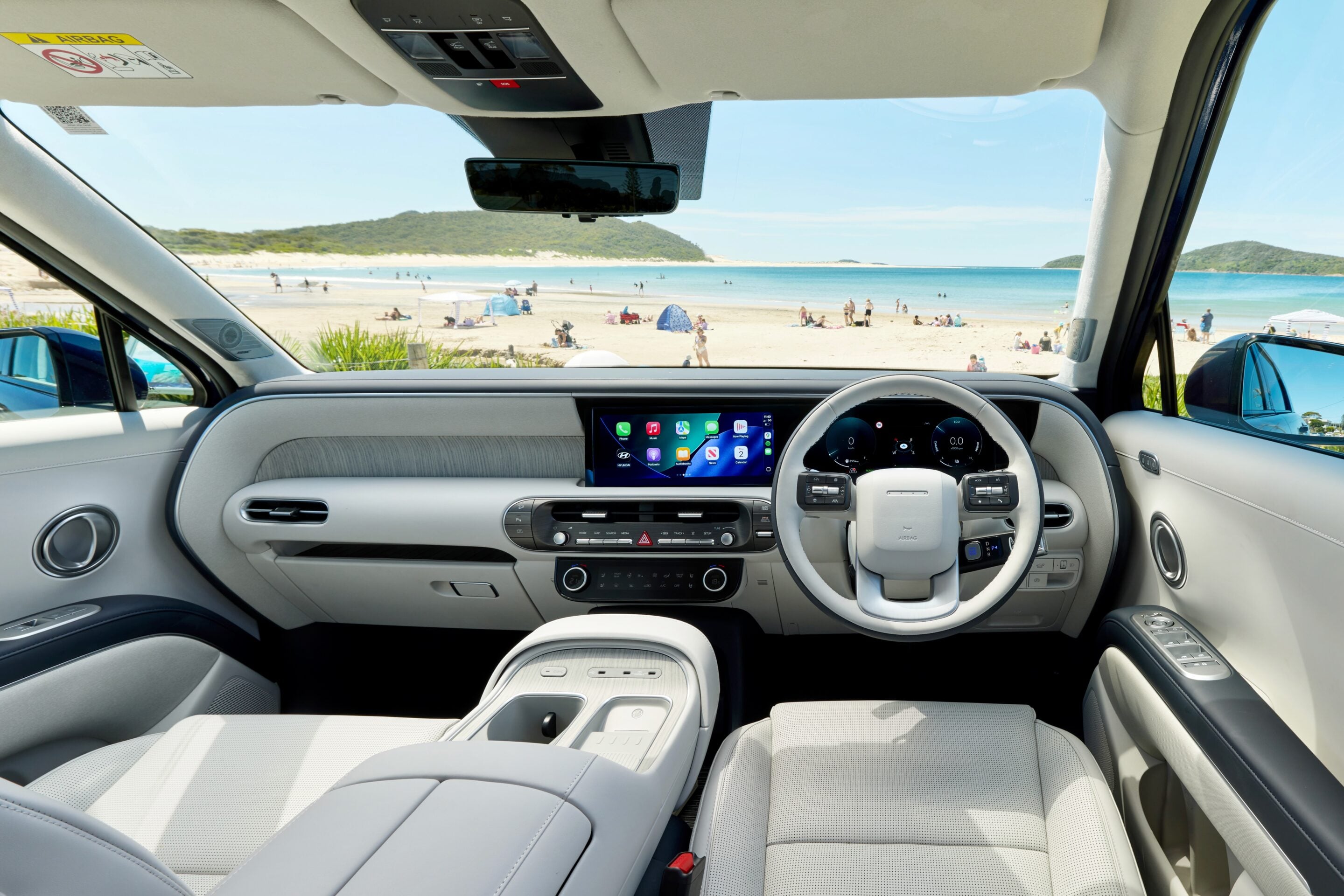 Inside the cabin is an impressive space and a big step forward compared with the previous Palisade. For starters, it’s got leather or leather-like trim almost everywhere you touch, while there’s an added depth to the trim pieces and switchgear that wasn’t previously present in the Palisade. It’s not quite to the level of Genesis, but it certainly feels plusher than the Santa Fe and Ioniq 5.