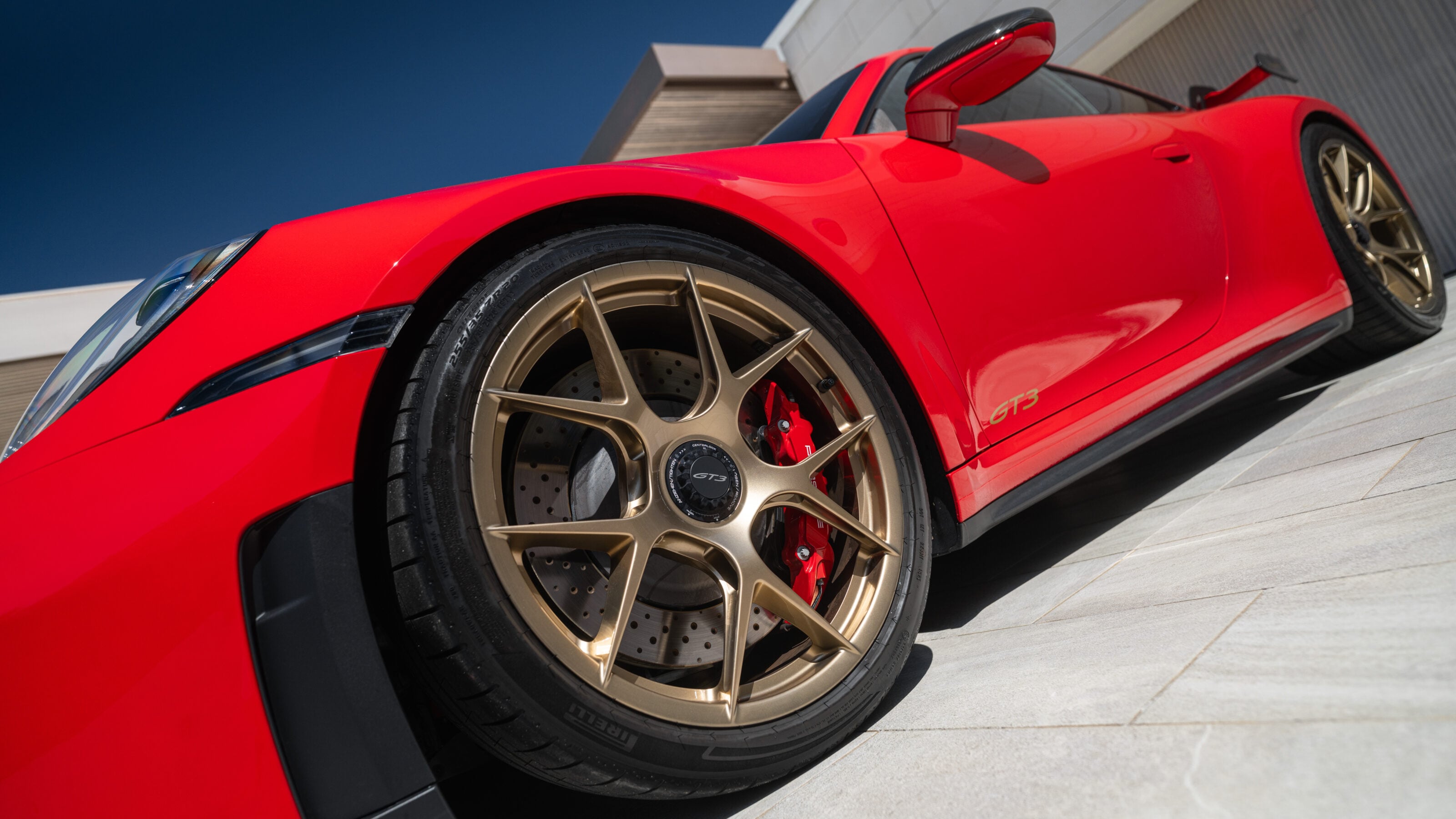 After a few laps, we get to switch into the be-winged GT3 with the Weissach package and seven-speed PDK shift. It instantly feels a good deal more serious, bucket seats hugging your hips and a carbon cage blocking much of the rear-view. Both cars run the same suspension settings and wear the same staggered Pirelli P Zero R rubber: 255/35 ZR20 up front and 315/30 ZR 21 at the rear.
