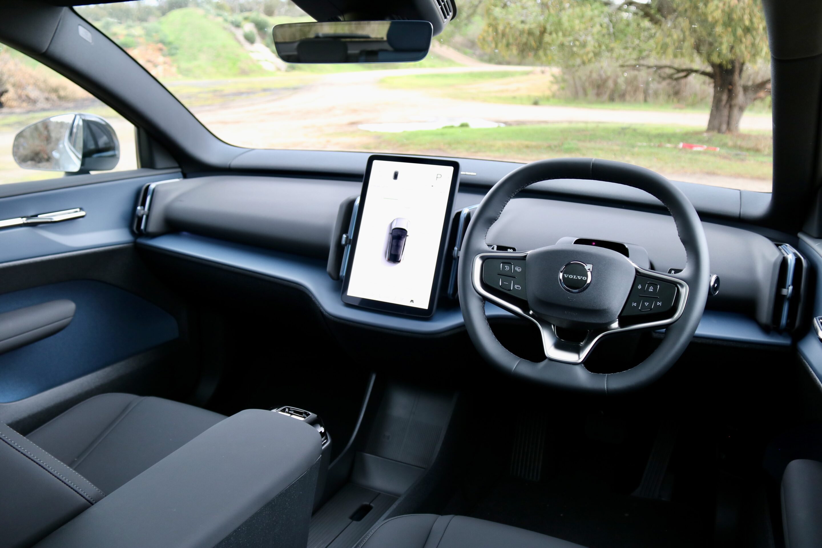 But almost every feature in the EX30 Cross Country is controlled through the touchscreen, including the headlights, safety systems, seat settings, mirror adjustment, climate control and 360-degree camera.