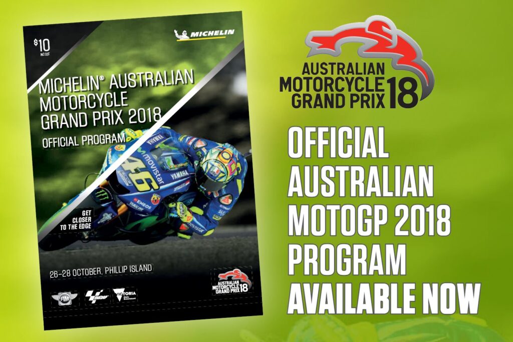 The 2018 Australian Motorcycle Grand Prix official program is now available at your local newsagent, and in selected Coles Express, Caltex, Seven11, Newslink and WH Smith stores. Get your copy today!